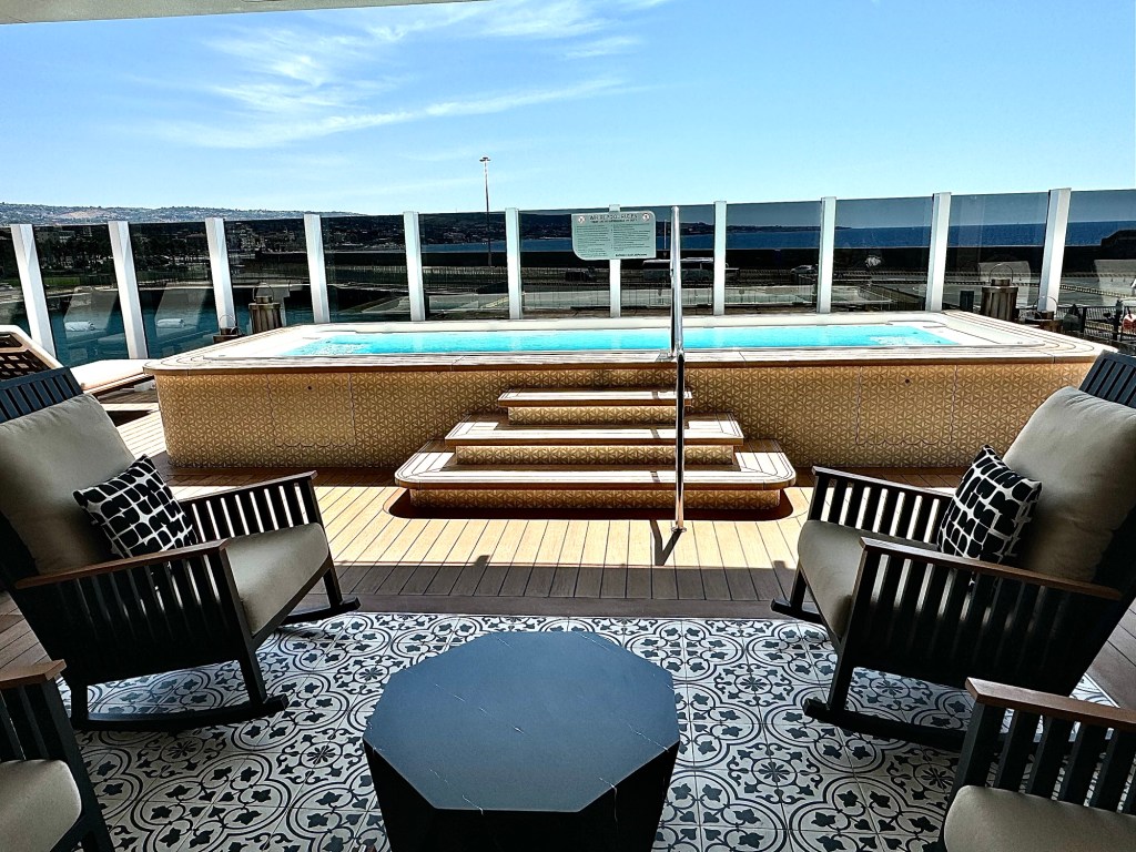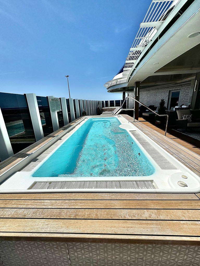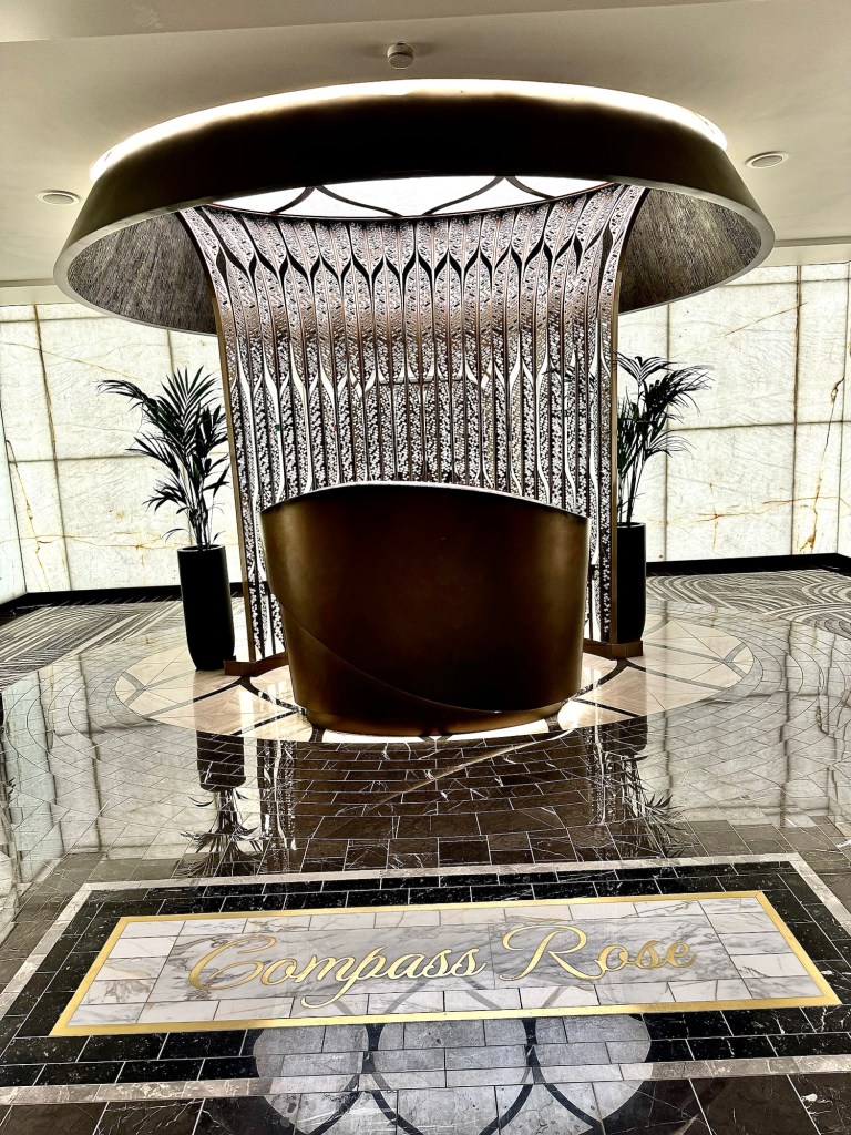 Hi Gang! The word of the day is WOW! That’s what we kept saying when we saw each area of this glorious ship. I mean hands down it is one of most luxurious ships we’ve ever been on (but to be fair, the Explora Journey’s ship was pretty darn close but that was 6 months ago!). Our room is fabulous with tons of storage space and a comfy king size bed that looks out over the large deck area. I know we’re really going to enjoy this ship!