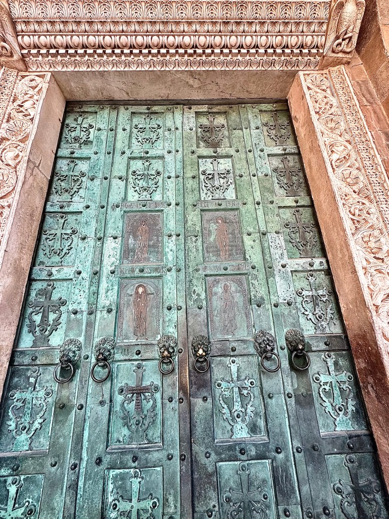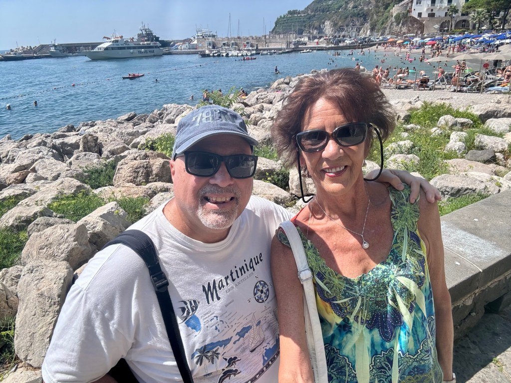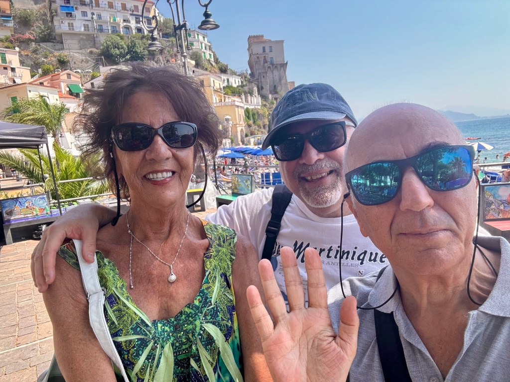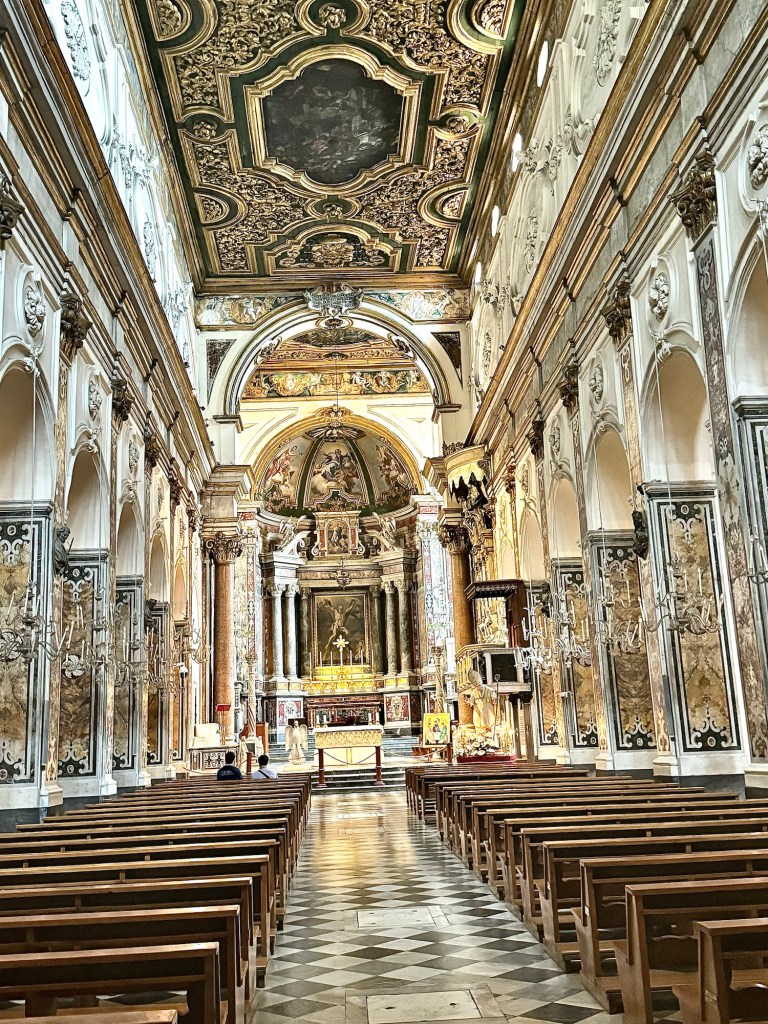 Selfie in Cetara!Selfie with our Tour Guide Lello!The Beautiful Cathedral of St Andrew!Cloister and Bell Tower of St Andrew!A 1,000 Year Old Fresco in St Andrew!Altar of St Andrew!The Large Cathedral of St Andrew!The Bronze Doors of St Andrew!Cool Sculpture in Amalfi!Our Afternoon Snack!