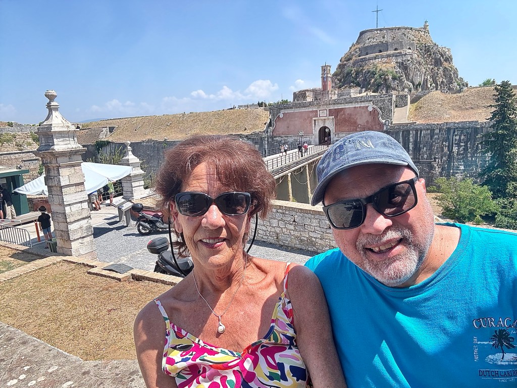 Old Venetian Fortress!Us at the Old Venetian Fortress!Church in Old Town Corfu!Palace of St Michael & St George!Pedestrian Street in Old Town Corfu!View of Albania from Corfu!Close up of Albania from Corfu!Old Town Corfu from our Ship!Jeff Bezos’s Yacht??? Lol