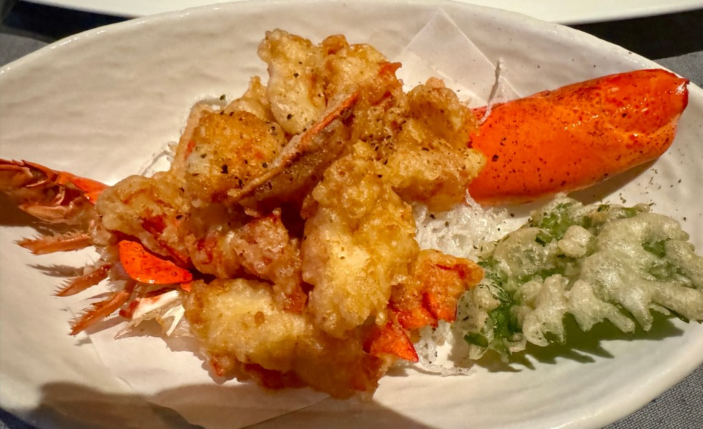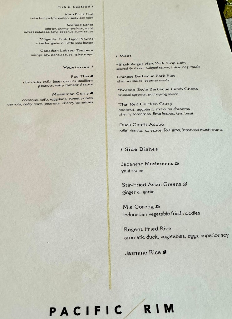 We ate way too much but it was all so yummy. For starters Kathy got the Duck Spring Rolls and the Pot Stickers. I got the Miso Soup, the Alaskan King Crab Roll and the Crispy Soft Shell Crab Tempura. For our mains Kathy got the Canadian Lobster Tempura and the Black Angus New York Strip Loin. I got the Miso Black Cod and the Chinese Barbecue Pork Ribs. For dessert we both got the Tres Leches. Kathy shared a little lobster with me so I got my lobster fix in!