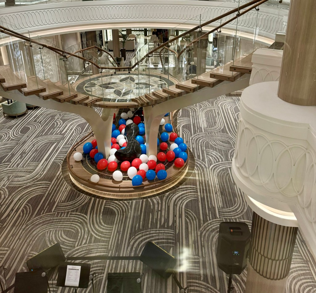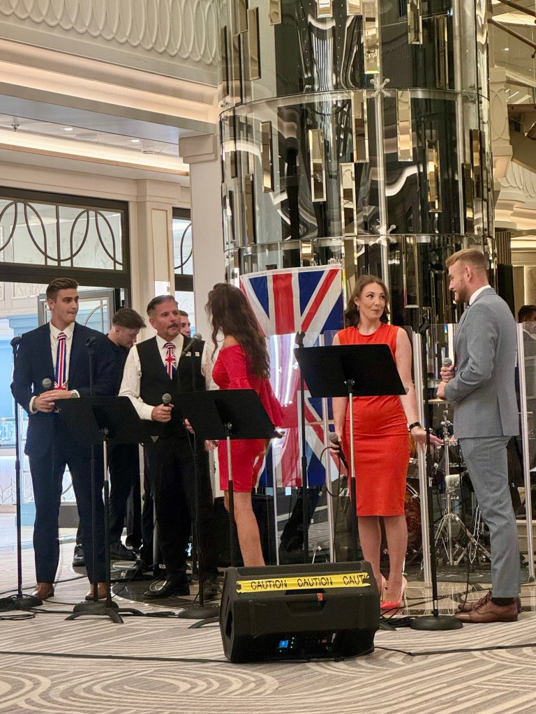 So after getting packed and placing our suitcases out in the hall, we went down to the Atrium to listen to David the cruise director and the Regent singers do all Beatles songs. David even donned a “Beatles wig” and pretended to be Paul McCartney including the British accent. He’s hilarious!