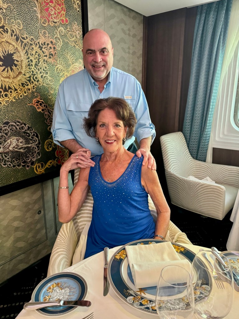 After the show we went to listen to our favorite piano player Mark who played all Elton John music. It was so good! And I forgot to mention yesterday that when Kathy came into the piano bar last night, Mark was just finishing up his last song (she had been off playing the slots!). Kathy had this beautiful red dress on and Mark said, “well given that dress she’s wearing I’ll play one more song in her honor”! And he played “The Woman in Red”! So classy!