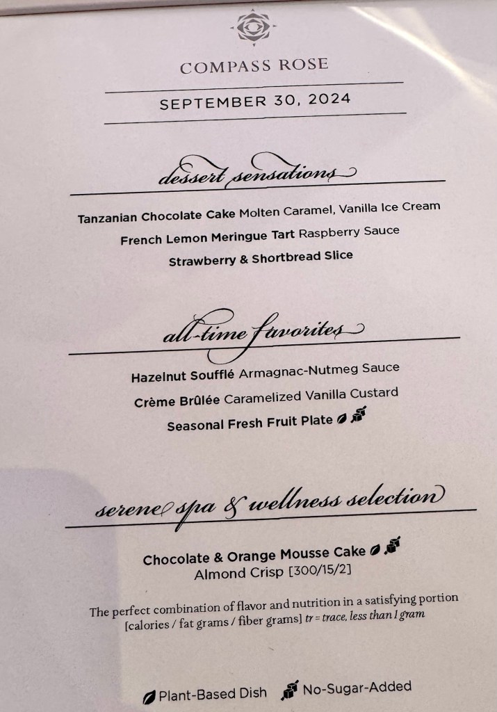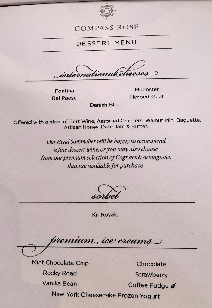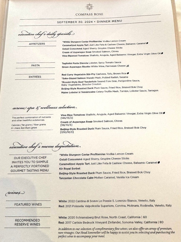 We had dinner in Compass Rose tonight and… drum roll please… WE DIDN’T EAT LOBSTER!! I know… I know, you can’t believe it. But my friend Jeremy said if we kept eating them the LPS would come after us. You know, the Lobster Protection Society! Lol. Seriously though, the food was still great, especially the duck!