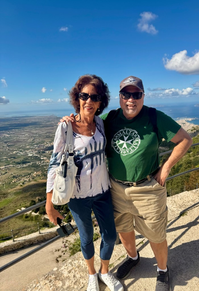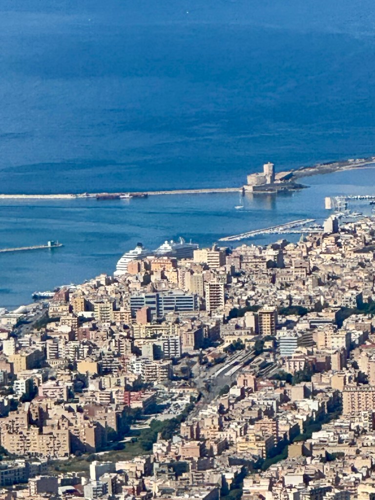 Hi Folks! We were docked in Trapani, Sicily today. Which is part of Italy but don’t tell the Sicilians that! They think they are their own country! This is our third stop in Sicily over the last year. We’ve been to Catania and Taormina on the eastern side and now Trapani on the western side. Later this year we’ll visit Siricusa in the southeastern corner so we love Sicily!