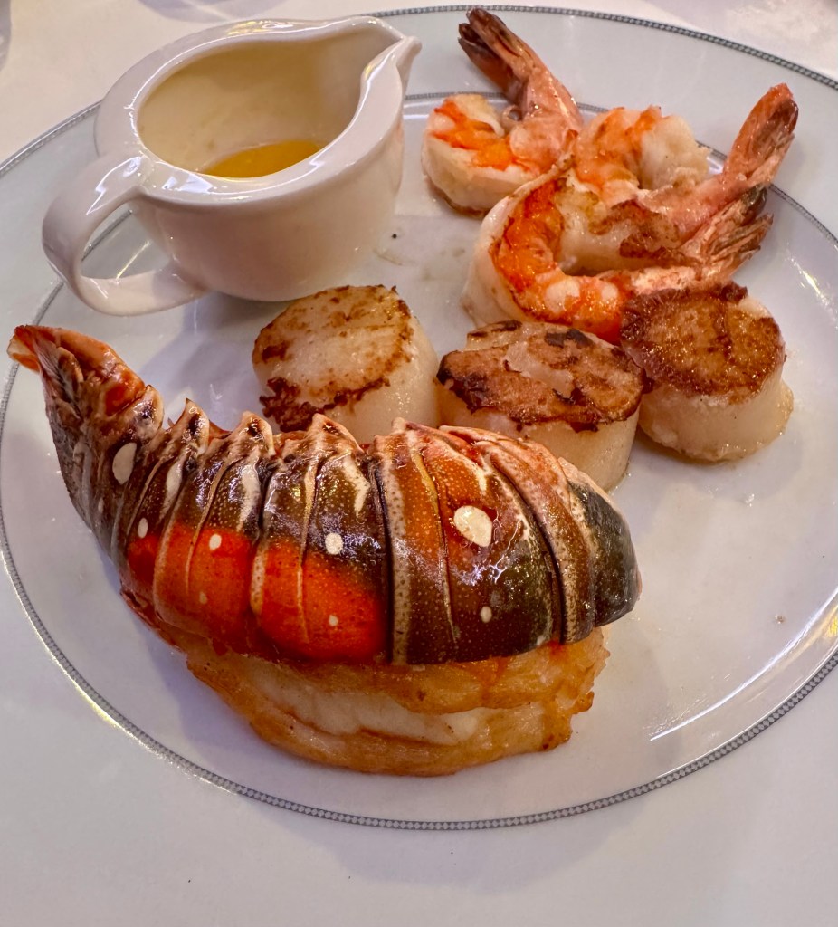 After that we had dinner and I got back into my “if it ain’t broke don’t fix it” mode and got my same seafood extravaganza. That Lobster Protection Society is probably sending out a hit man on me as we speak!
