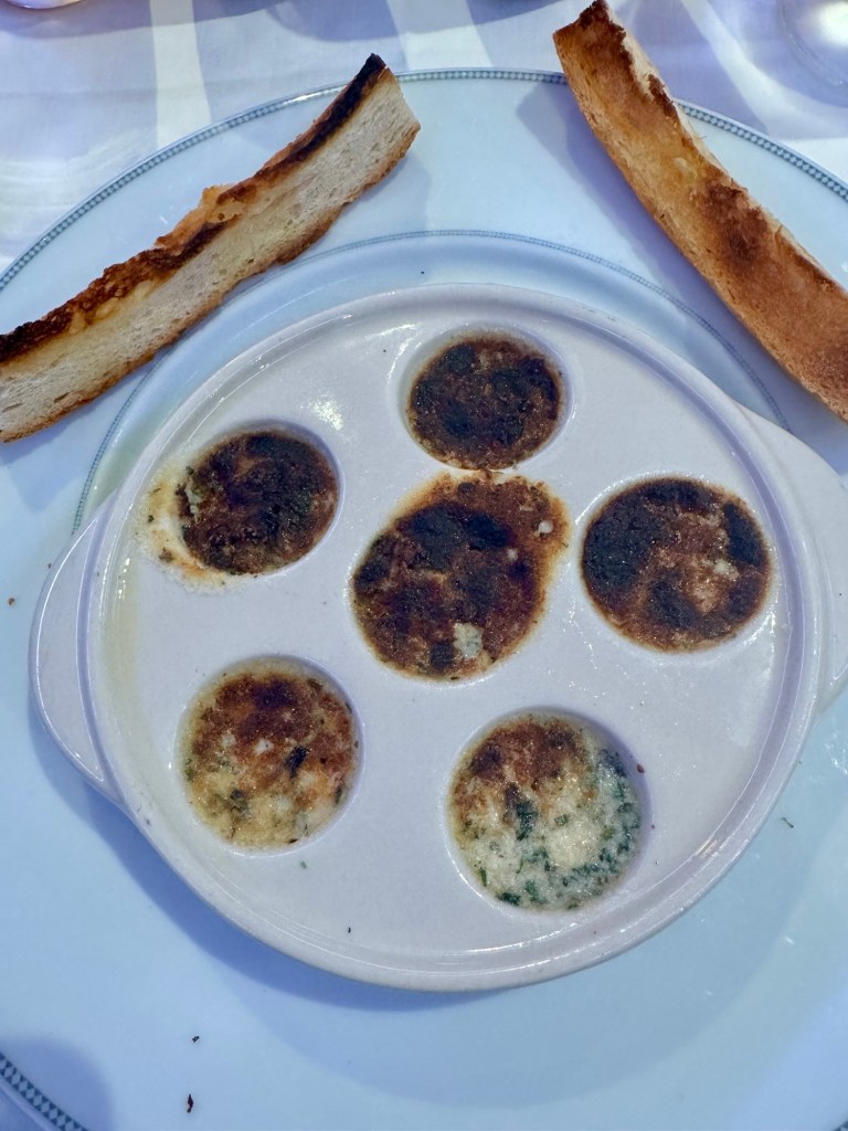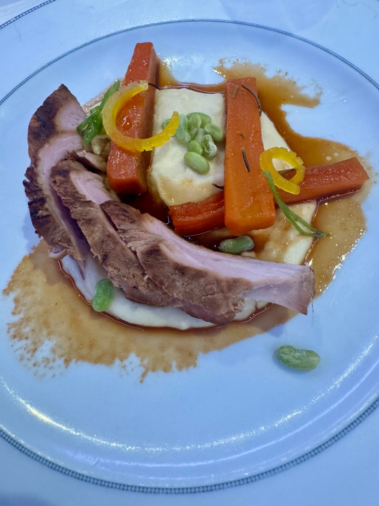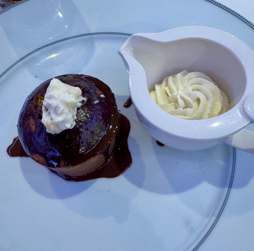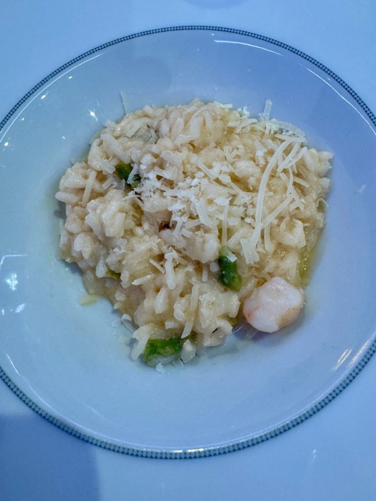 We had a really nice dinner. As I mentioned, the ship’s comedian, Bengt Washburn, joined us and we had some great conversation. He’s just as funny during dinner! I actually stayed off the lobster bandwagon one more day but kept my seafood fix going with escargot and shrimp risotto. And I jumped to the “other white meat” and had pork tenderloin.