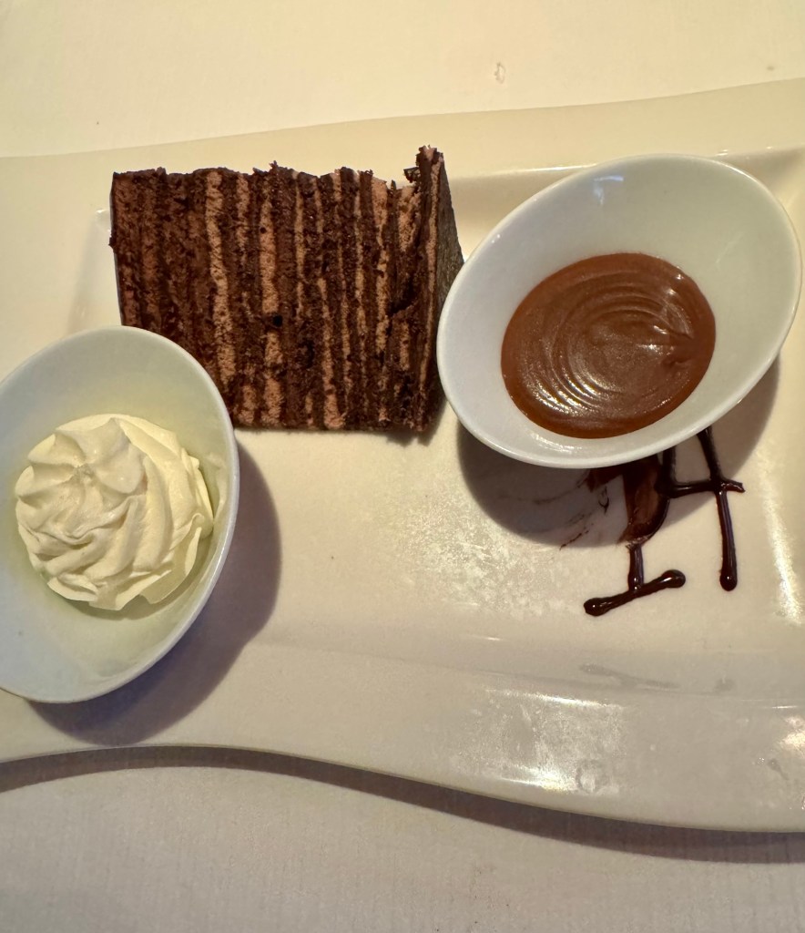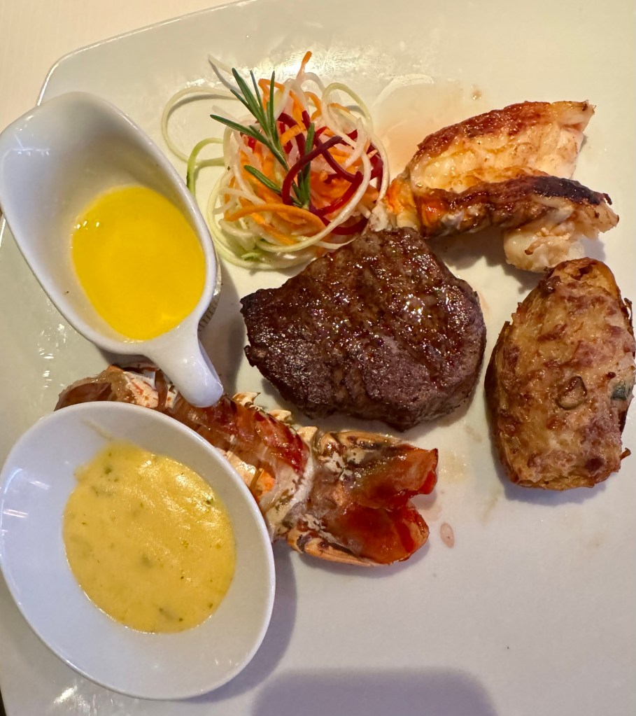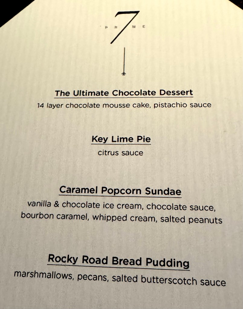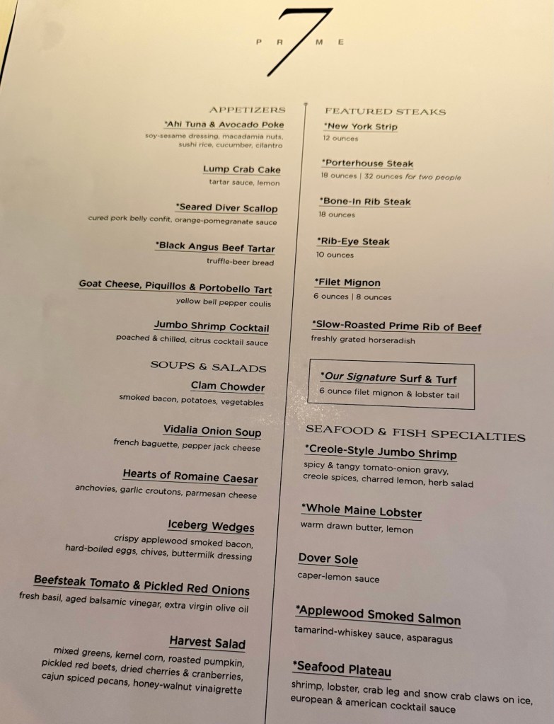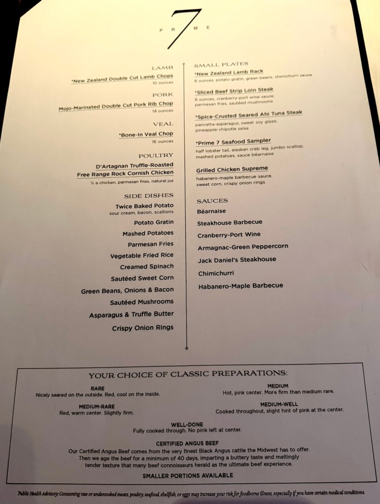 Hi again All! Well we put the feed bag on tonight (don’t we do that every night??) and had dinner at the specialty restaurant Prime 7. It really is special and like I’ve said before, it’s one of the best restaurants on land or sea. And it’s free!