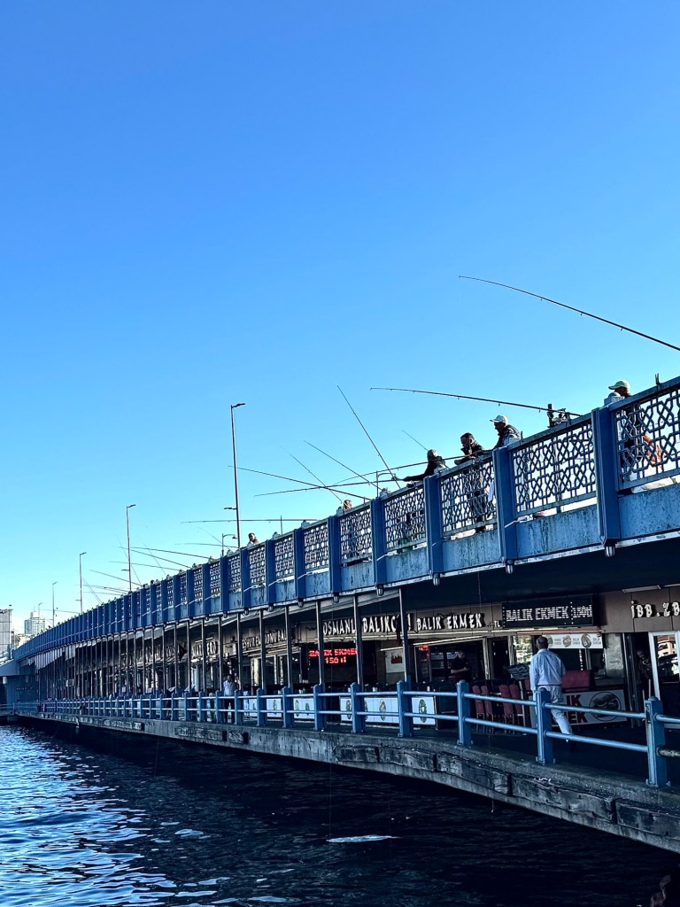 We then walked across the Galata Bridge that crosses over the Golden Horn. There were lots of men fishing from the bridge and the tour guide said the fish get tired from swimming thru the strong currents of the Bosphorus and come into the Golden Horn water area to rest. That’s why there are so many fish here and so many fishermen!