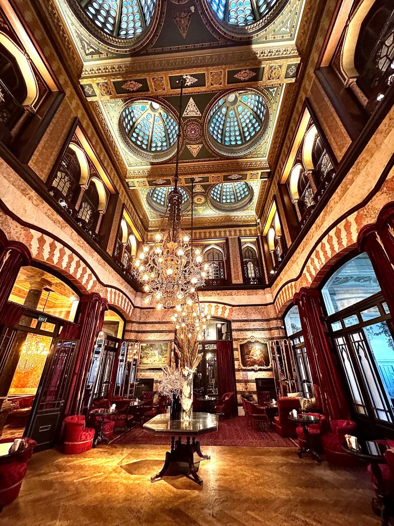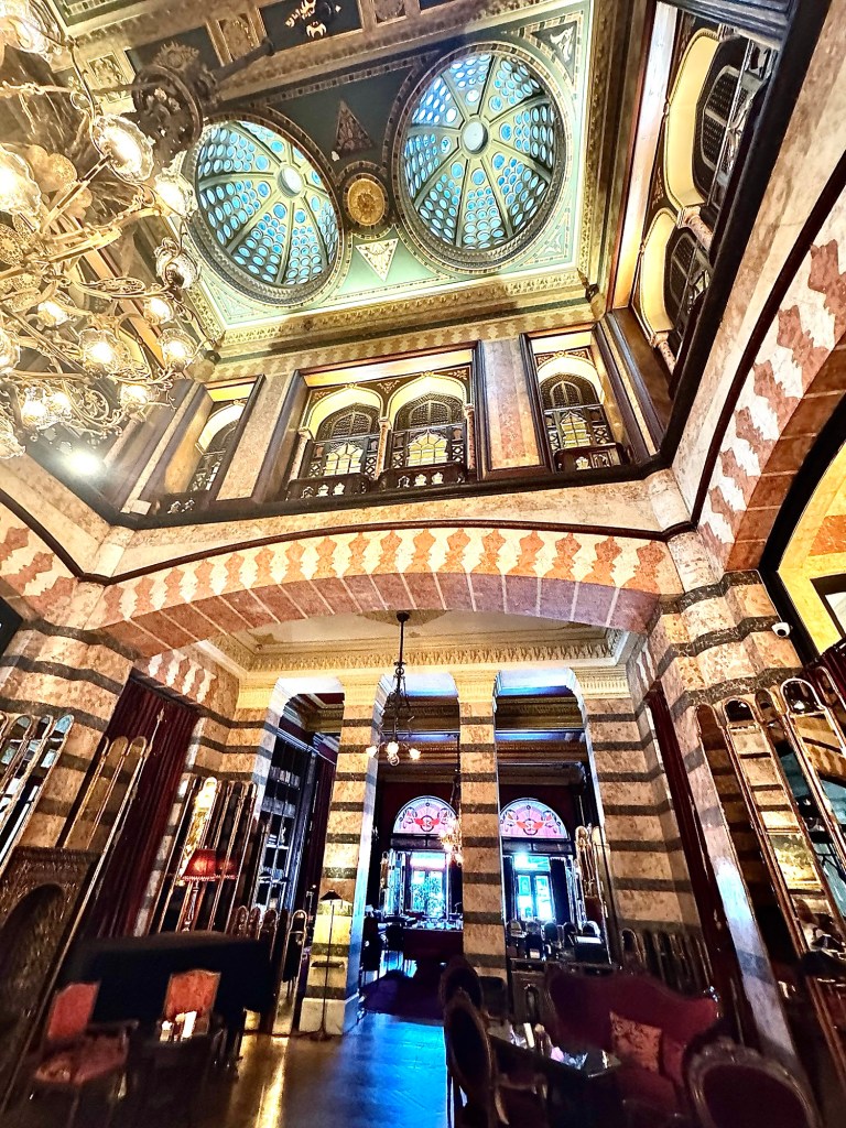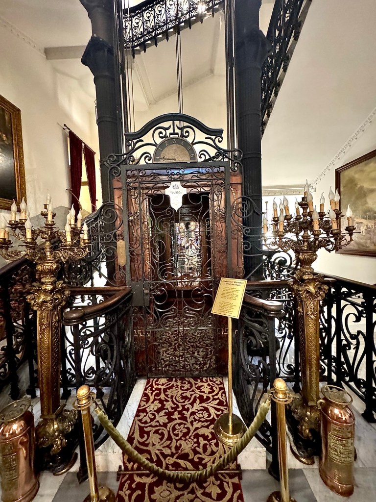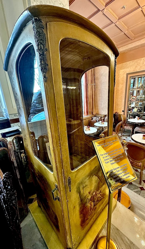 Back in 1892, they built a luxury hotel for the Orient Express called the Pera Palace. We made a stop there to have Turkish tea and cookies. It was a very upscale hotel and just beautiful inside. Agatha Christie stayed here and wrote Murder on the Orient Express here! It has the second oldest elevator in the world (the one in the Eiffel Tower is older) and also had a one person carriage on display where 4 men would carry passengers to the hotel from the Orient Express. Now that sounds like Regent service!