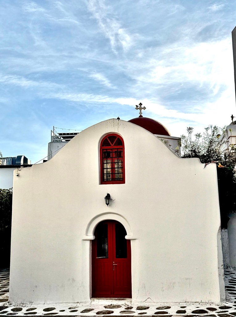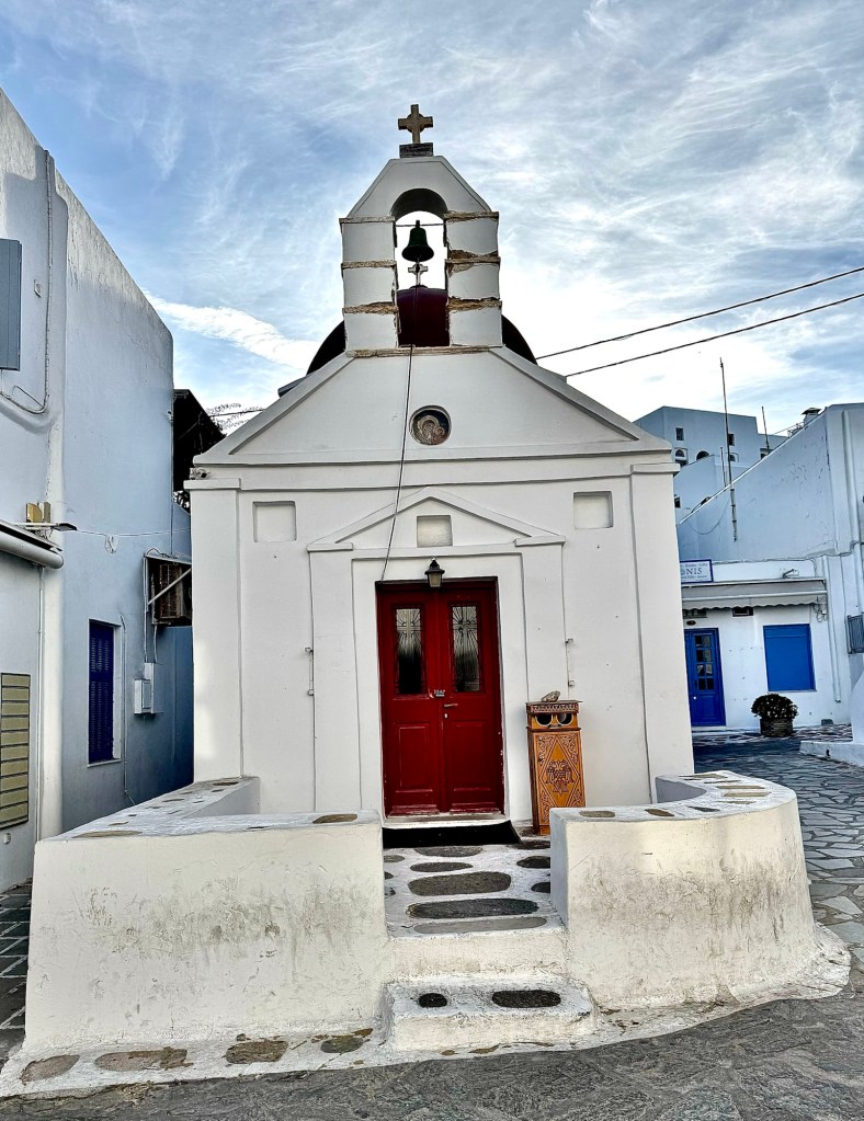 The bus then took us to Ano Mera, a traditional Mykonian village, where we visited the 16th century Panagia Tourliani Monastery. After that we stopped at a local “taverna”, a traditional Greek restaurant, and had drinks and mezedes (local appetizers). We then drove back to the pier.