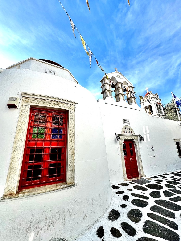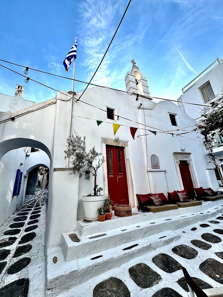 For our tour, we were docked at the new port so we took a short bus ride to the old port and the town of Mykonos. Our guide took us thru the labyrinth of walkways that had many small shops and lots of churches. We stopped at one of the oldest bakeries on the island and had a traditional cinnamon cookie. It was yummy!