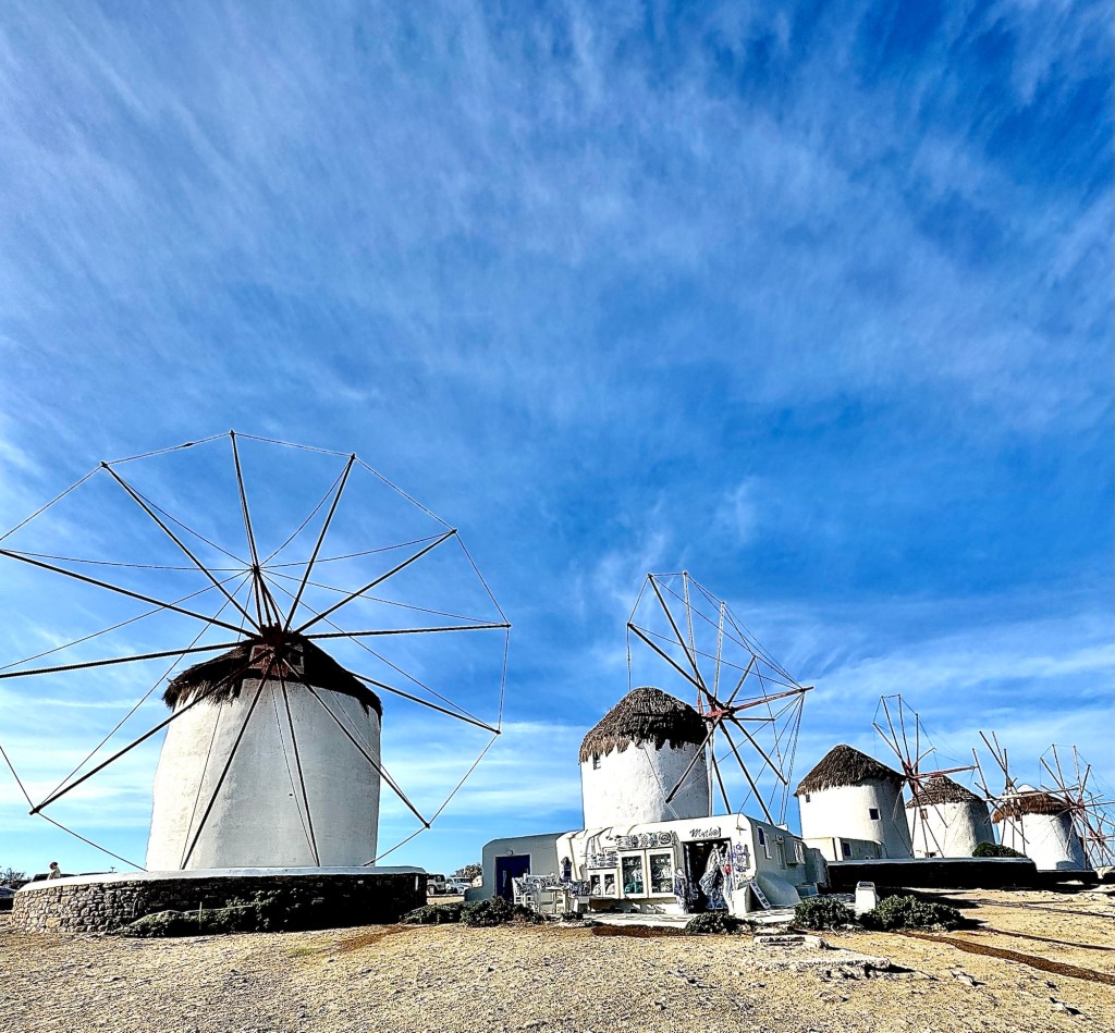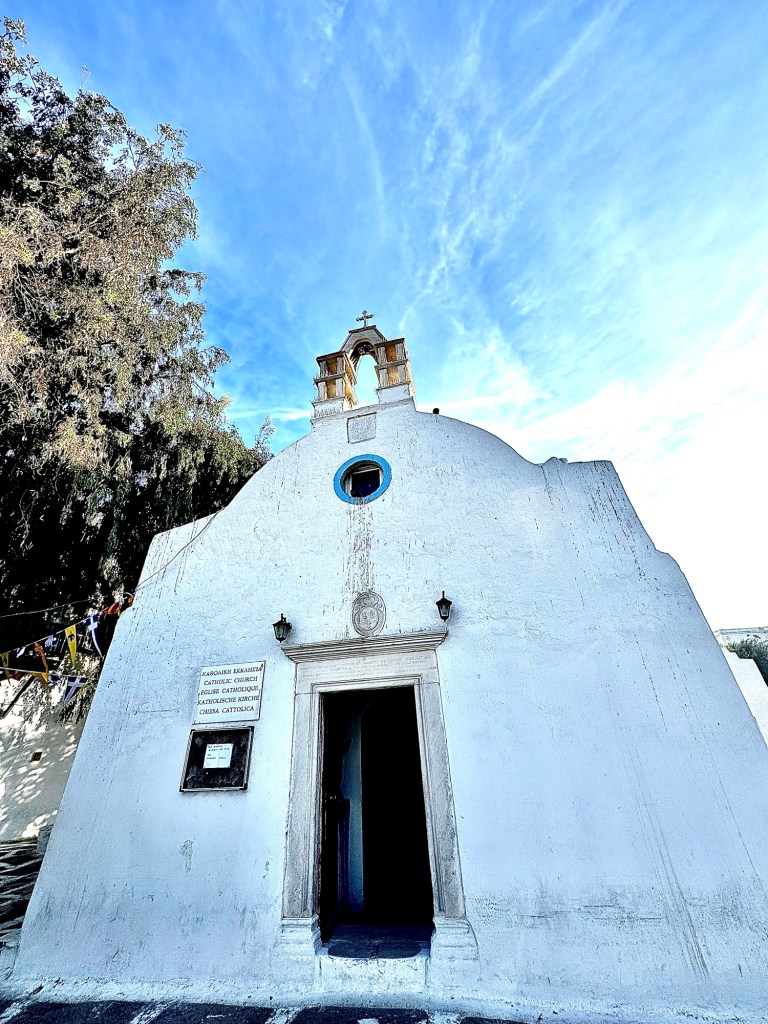 We then walked past the only Catholic Church on the island (the rest are Greek Orthodox) and then to the five windmills they have on the hill. Given how windy it is here, they’re good to have!