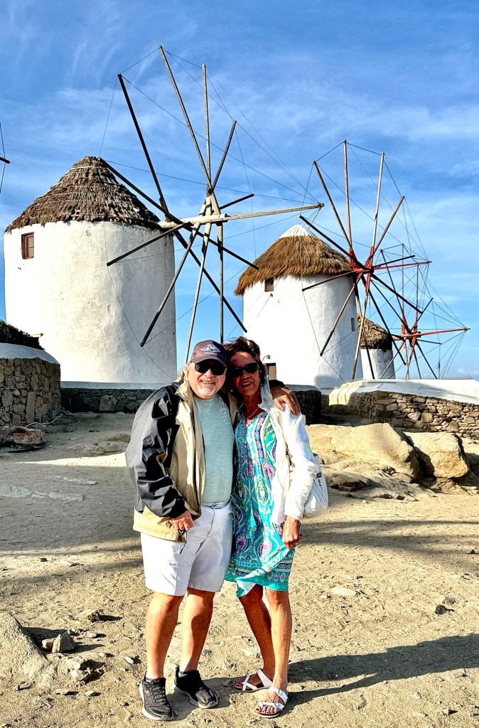 Hi Gang! Today we’re docked in Mykonos Island in Greece. It is sunny and 75 but a bit windy like most of the Greek isles. We did a tour with Regent that took us around the island.