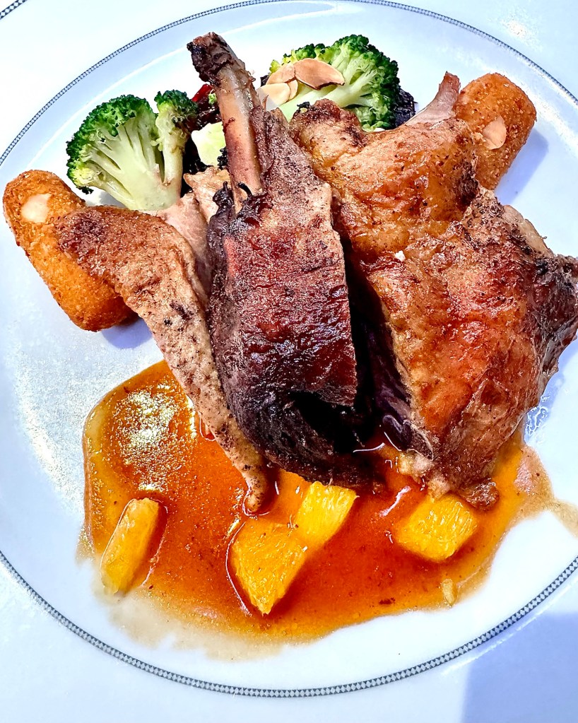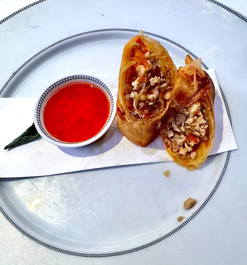 After that we got ready for dinner and ate in Compass Rose again. I switched over to fowl tonight! Of course I had a little seafood with my escargot appetizer but then had a Chicken Spring Roll and the Duck a l’Orange. Quack quack!