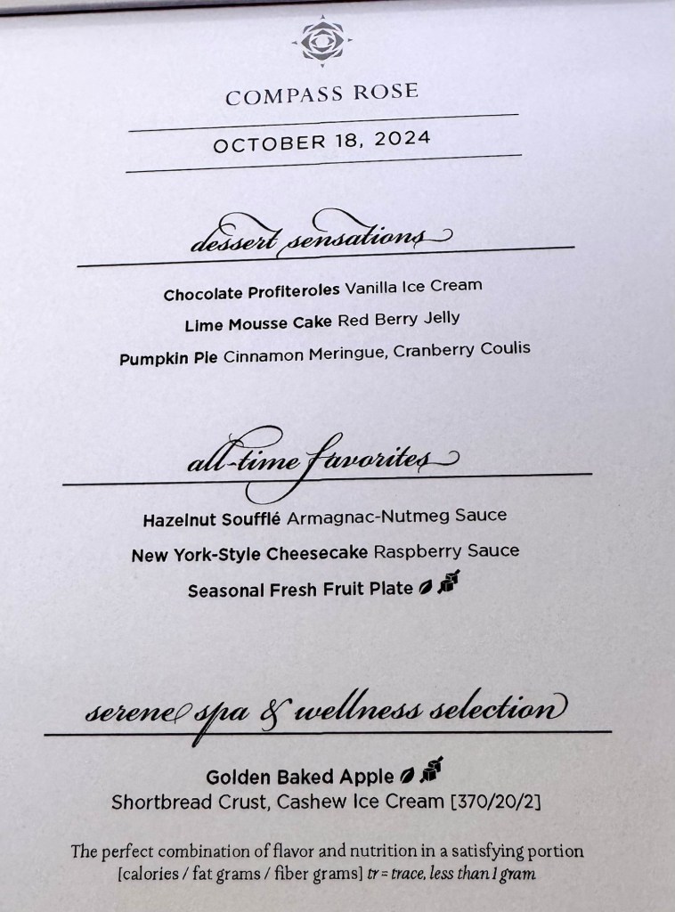 Hi Folks! TGIF! Today we had a glorious sea day! We got lots of rest but also got educated, won some money and once again had great food and entertainment! Can’t beat all that!