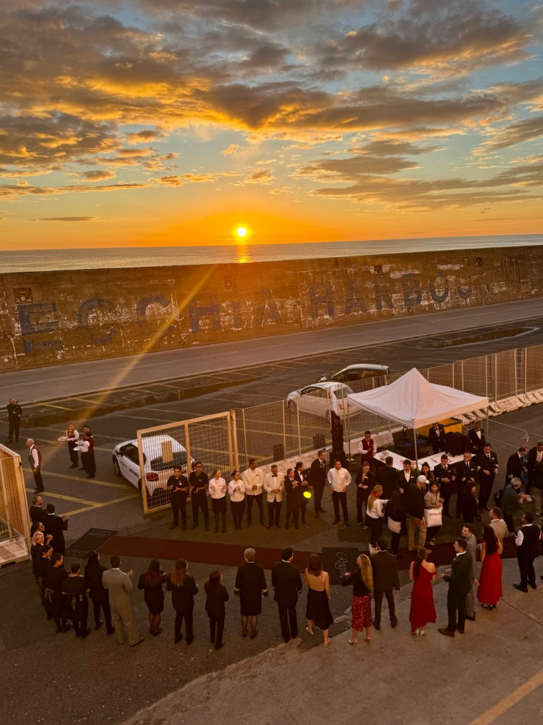 Hi again Gang! Before we went to dinner tonight I went to get a picture of the sunset. What I found was a long line of the Regent officers (including the Captain!) along with the Entertainment staff and Ray the cruise director all greeting the people coming back from a 10 hour tour to Rome. I guess they always greet people after long excursions. How fun!