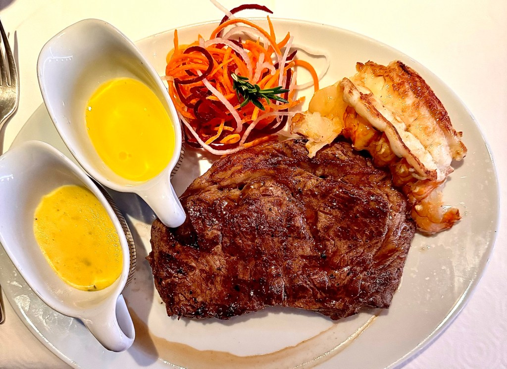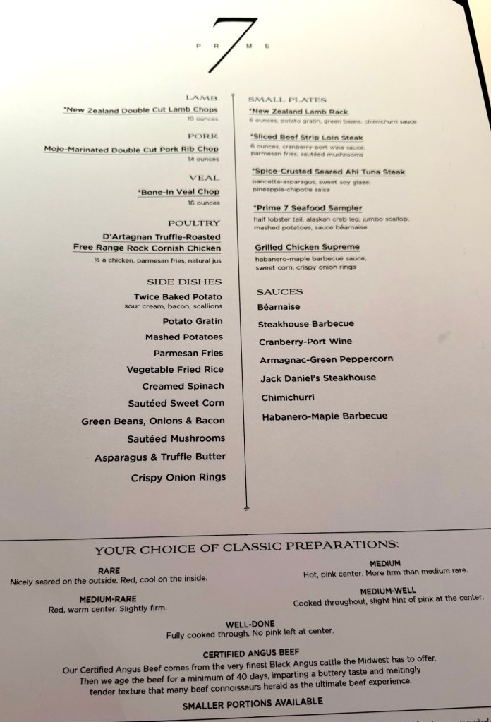 After that we went to dinner and had another amazing meal. The Prime 7 restaurant is really in a class by itself. Incredible food and service. Since we only have two days left I decided to jump back on the lobster band wagon (Kathy said she won’t make me any at home! Lol). I made my own surf and turf and had the 10 oz Ribeye with a lobster tail. So good!