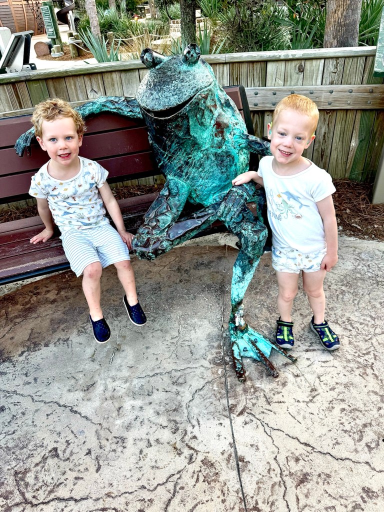 And it’s really like a nature preserve all over the island. When we arrived, there was an alligator, several turtles and a white egret all welcoming us in a lagoon a few feet from our beach house! The grands were excited to say hi to them each morning! (Don’t worry, the alligators aren’t aggressive and we never feed them!).