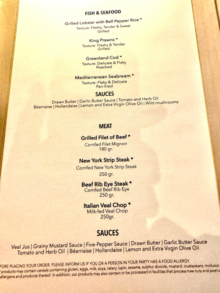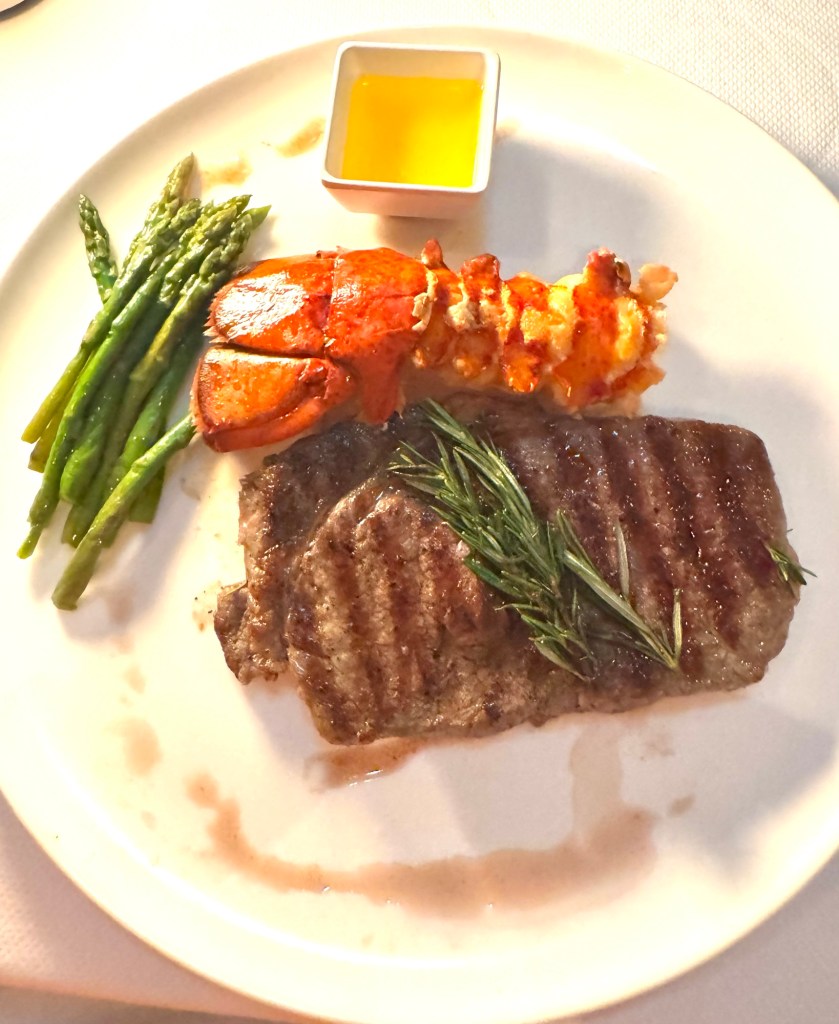 So to keep up our lobster tradition, we both did our own version of surf and turf. Nothing like an aged corn fed beef ribeye coupled with a lobster tail! Gotta love it! And the appetizers and desserts were yummy too! Look out Regent, Silver Sea is giving you a run for your money!