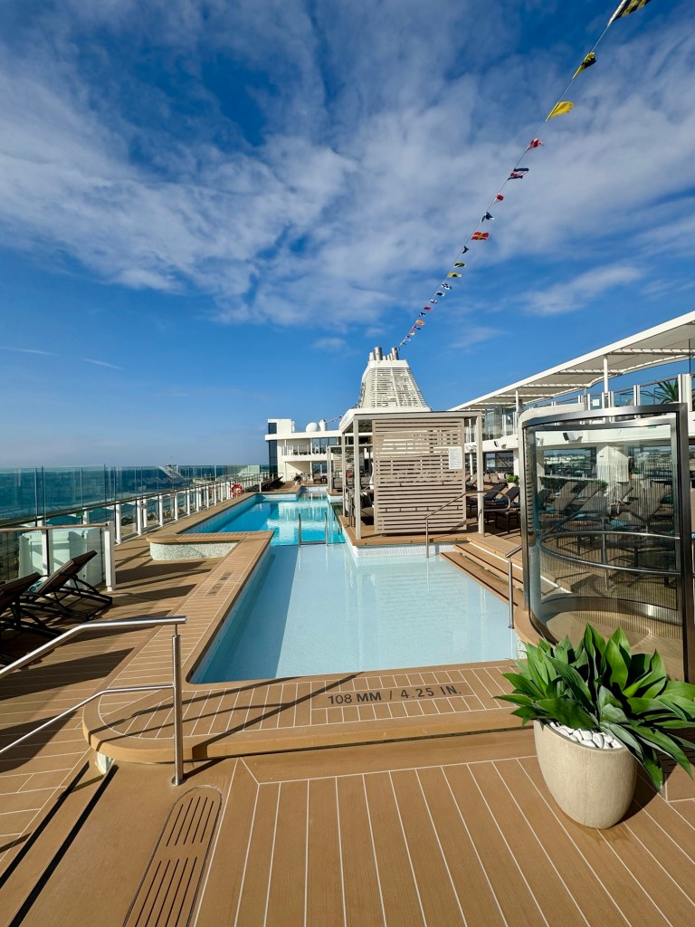 Since we had never been on this ship before we started out by just walking every floor and getting the lay of the land. I included lots of pics but it is truly a beautiful ship. And the asymmetrical design gives it a very open feel with lots of glass and natural light everywhere. I think we’re going to love it!
