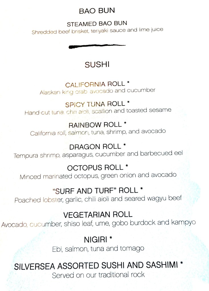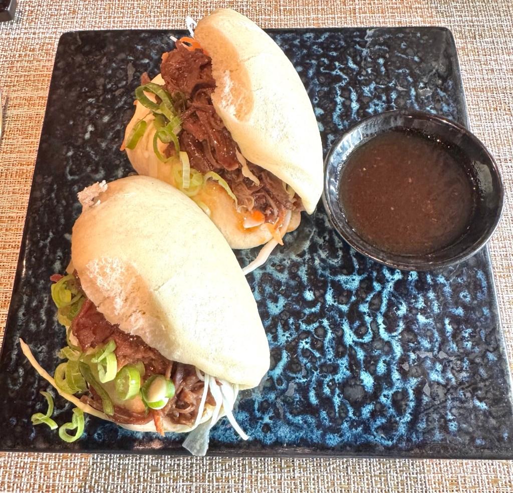 We had lunch in the Asian restaurant called Kaiseki. For dinner there is an extra charge to eat there but for lunch it’s free so we decided to try it out. It was delicious! We tried the Tonkotsu Ramen bowl which had pork, bok choy, a hard boiled egg, seaweed and lots of noodles and was so yummy! And their steamed Bao Buns were to die for. We’ll eat here again for sure!