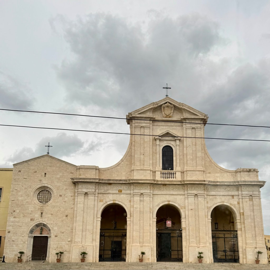 We then had lunch and set off on our excursion in the mid afternoon. Our tour started with a panoramic bus tour of the city. We passed by the historical Bonaria Basilica. Legend has it that a Spanish ship hit a major storm in the bay and to survive they threw everything off the ship including a locked chest of unknown contents. As soon as it hit the water the storm calmed down. When they opened it, inside was a statue of the Virgin Mary and Baby Jesus as seen next to the church. Thus this church became the patron church of sailors. Bonaria (which means good air) is a sister city to Buenos Aires which also means good air!