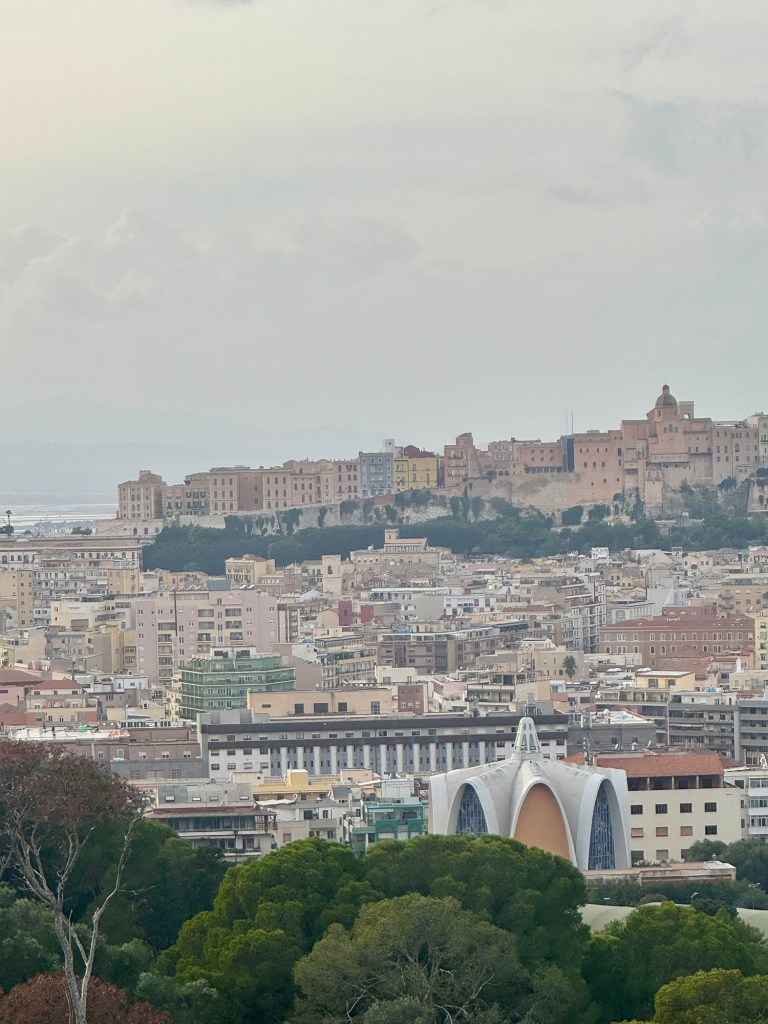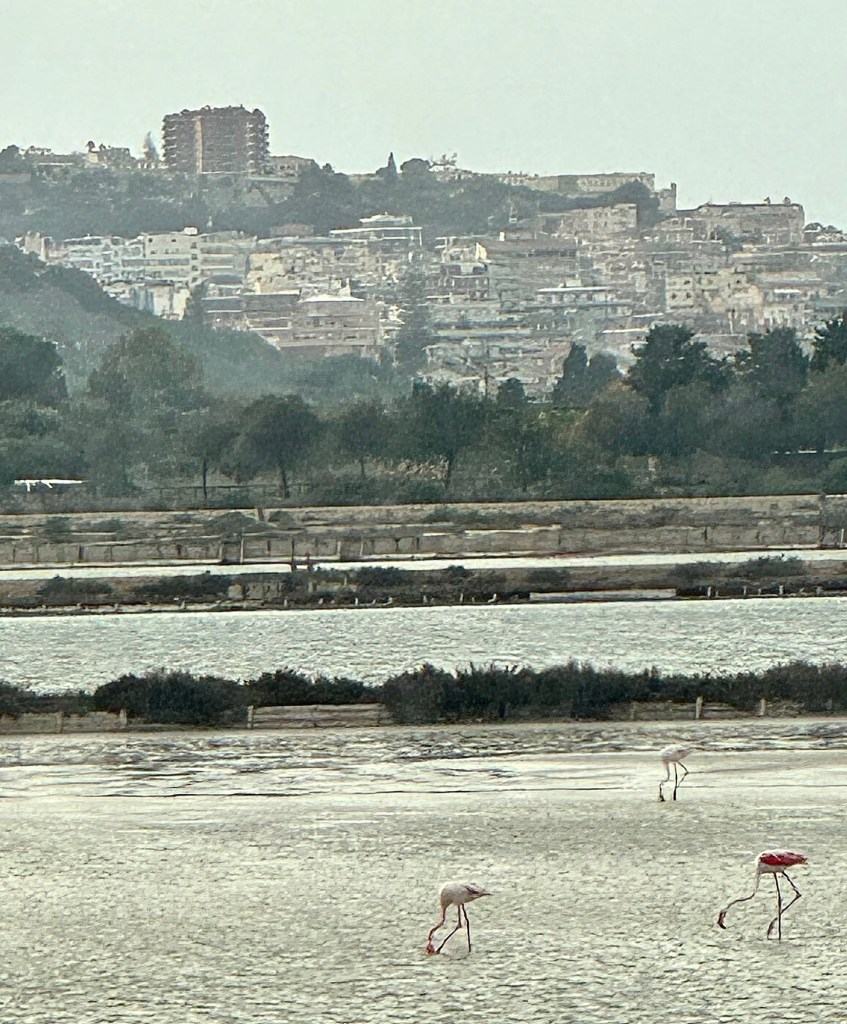 We then drove along Poetto Beach en route to Monte Urpinu for a photo stop over the city of Cagliari. They call Poetto Beach the beach of 100,000 since it can hold over 100,000 people given that is over 6 miles long. We also saw the old salt flats area where they used to gather salt but they don’t anymore. Now there’s just lots of flamingos there!