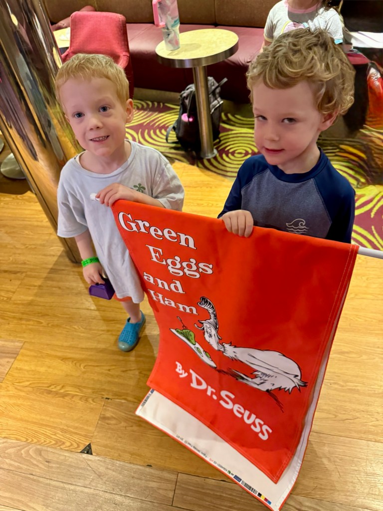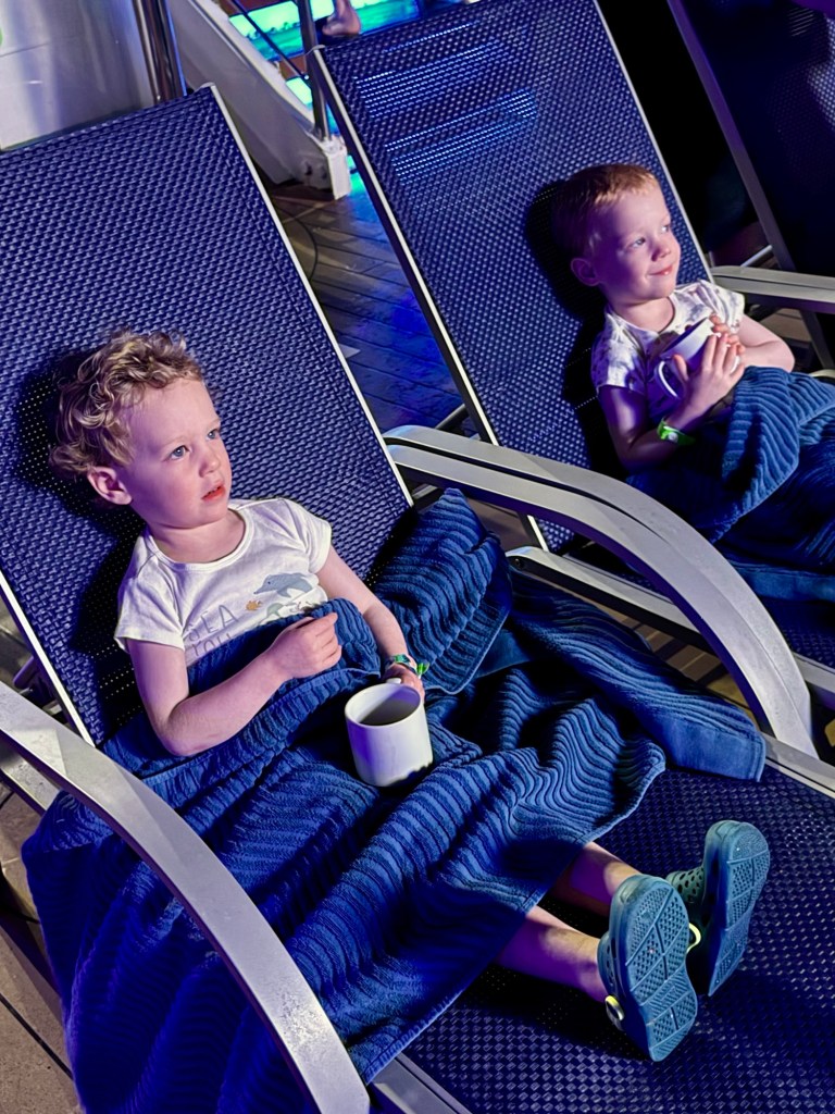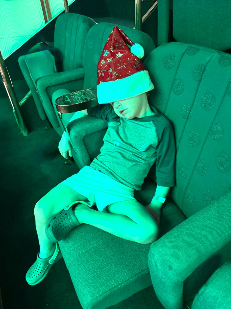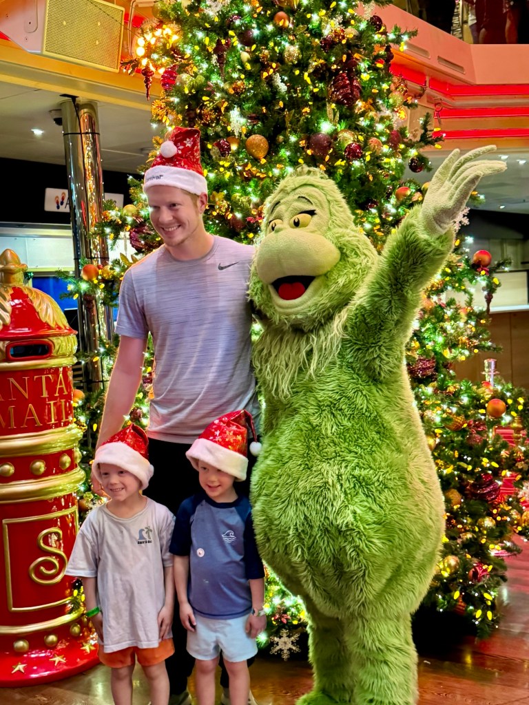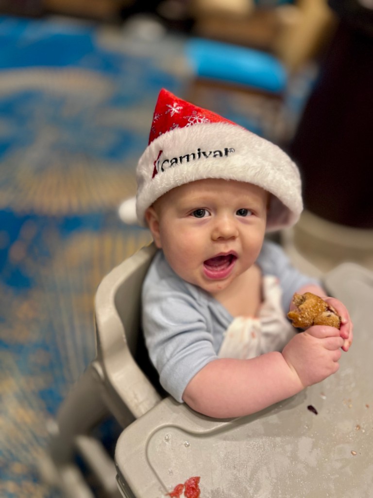 Chillin’ with the Towel Animals!Formal Night Dinner!An Outdoor Movie with Hot Cocoa!Hangin’ in the Hot Tub!Starting the Baby Crawl!Baby Crawl Winner with his Trophy!Dr Seuss Parade!Exhausted from all the Cruise Fun!Hangin’ with the Grinch!Merry Christmas to All!