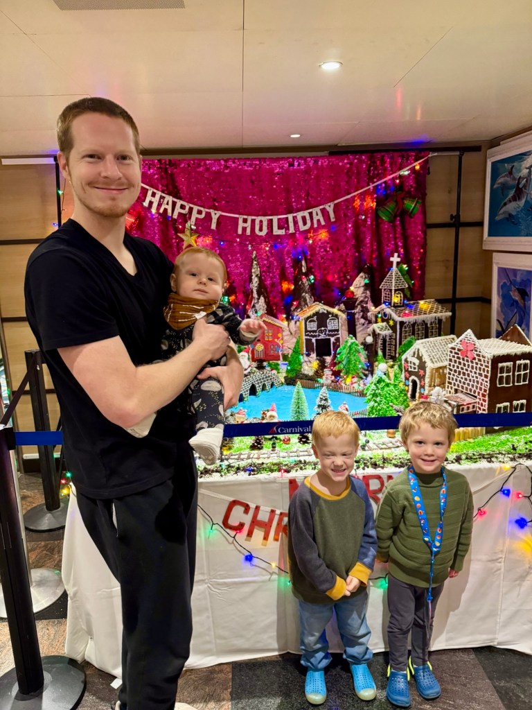 The ship was all decorated for Christmas and Carnival really does cater to kids since they did a Dr Seuss parade, a reading of Green Eggs & Ham as well as having Santa show up for pictures. They also have a great kid’s club that the older boys went to each day for a few hours to give mom and dad a break.