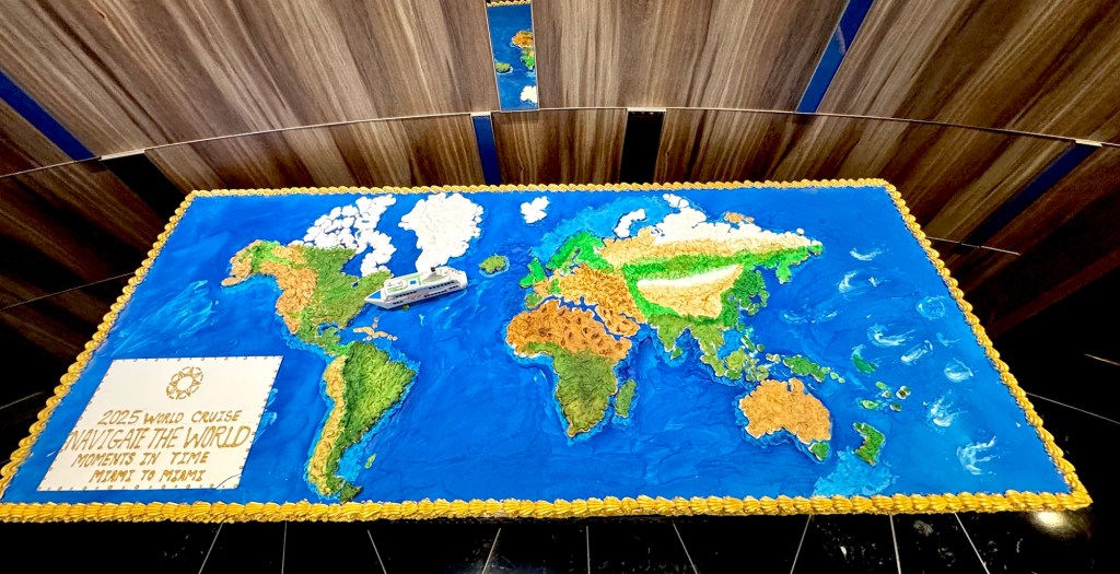 I’ve included pictures of our itinerary for this trip, the itinerary for the 2026 World Cruise, as well as a few from today around the ship and the port of Miami. I will send another update tonight after dinner.