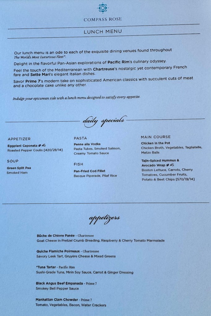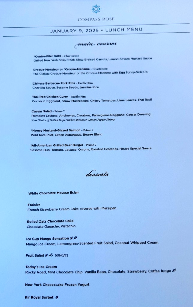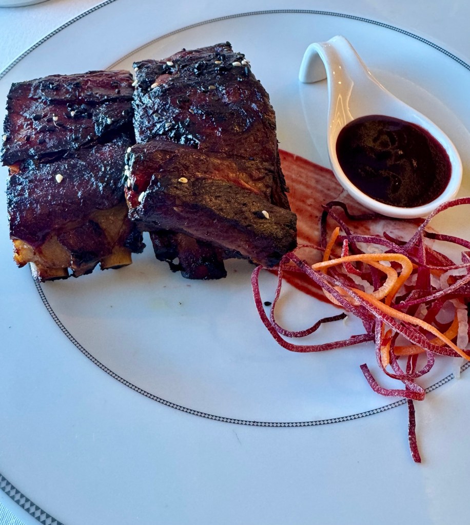 The second talk was on a brief history of the Caribbean but we missed that and had an amazing sit down lunch in Compass Rose. They only do that on sea days and we had some delicious split pea soup, goat cheese and Chinese Barbecue Pork Ribs. So yummy!