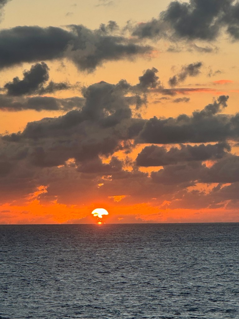 Hi Again Gang! Well our day had a nice sunny start and ended with a beautiful sunset. Nothing like a sunset on the high seas. Intoxicating!