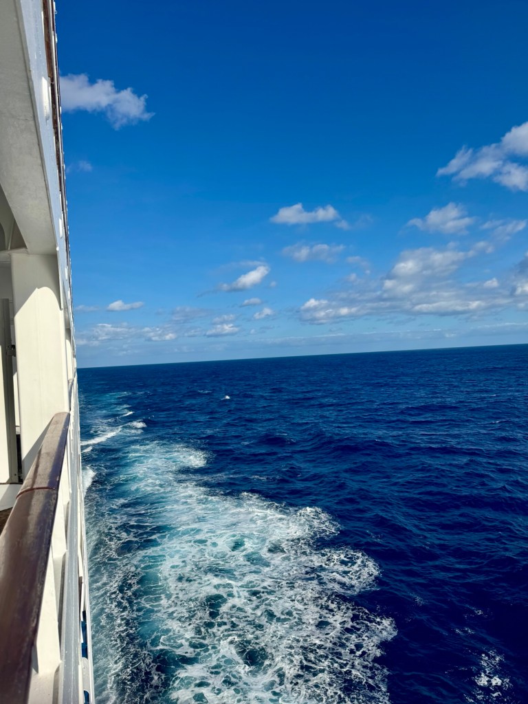 Hi Folks! Well today was a “wash, rinse repeat” day. In other words it was another sea day of sunshine, blue skies, education and good food! (Sorry to my family and friends in NC and PA that may be getting ice, snow and cold temps! Wish I could send you some of this heat!).
