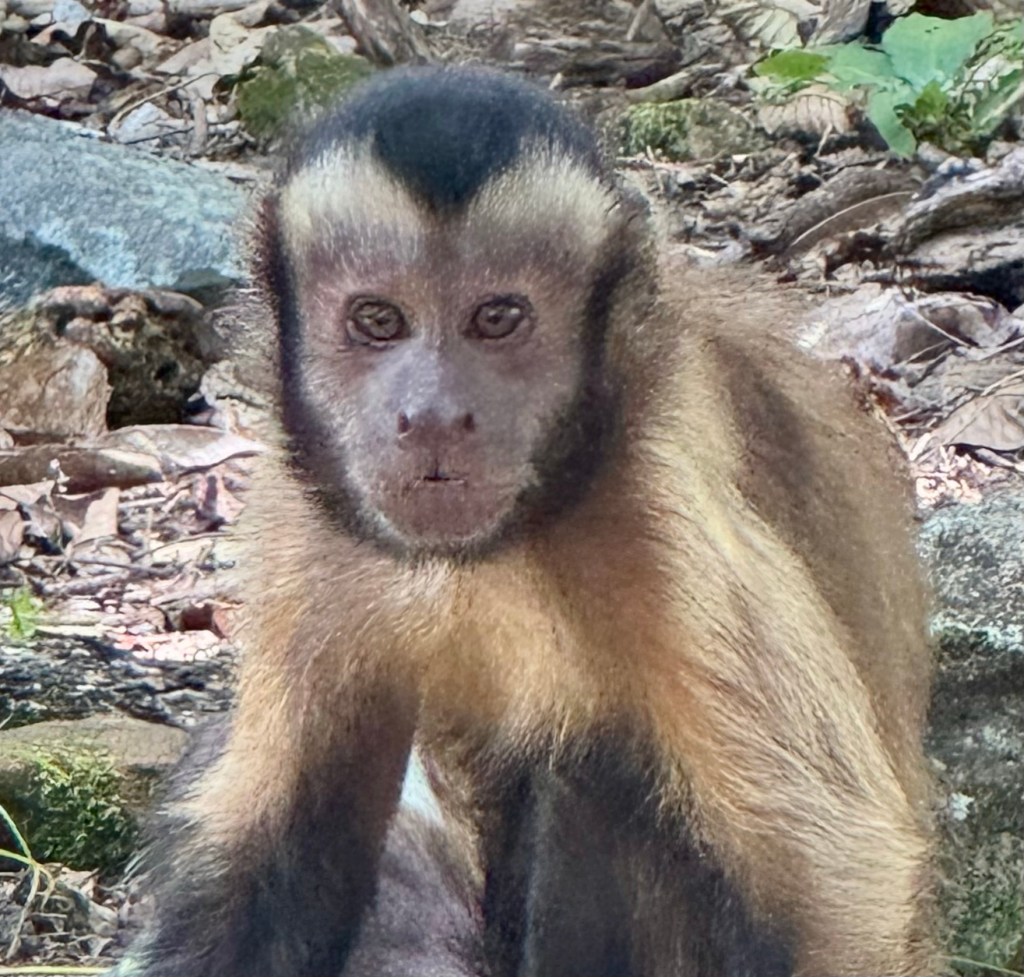 While walking the island we saw the prison, an old hotel, the church and a lighthouse. We also saw lots of wild animals. There were Capuchin monkeys running everywhere, a large guinea pig type animal called an agouti and several peacocks.