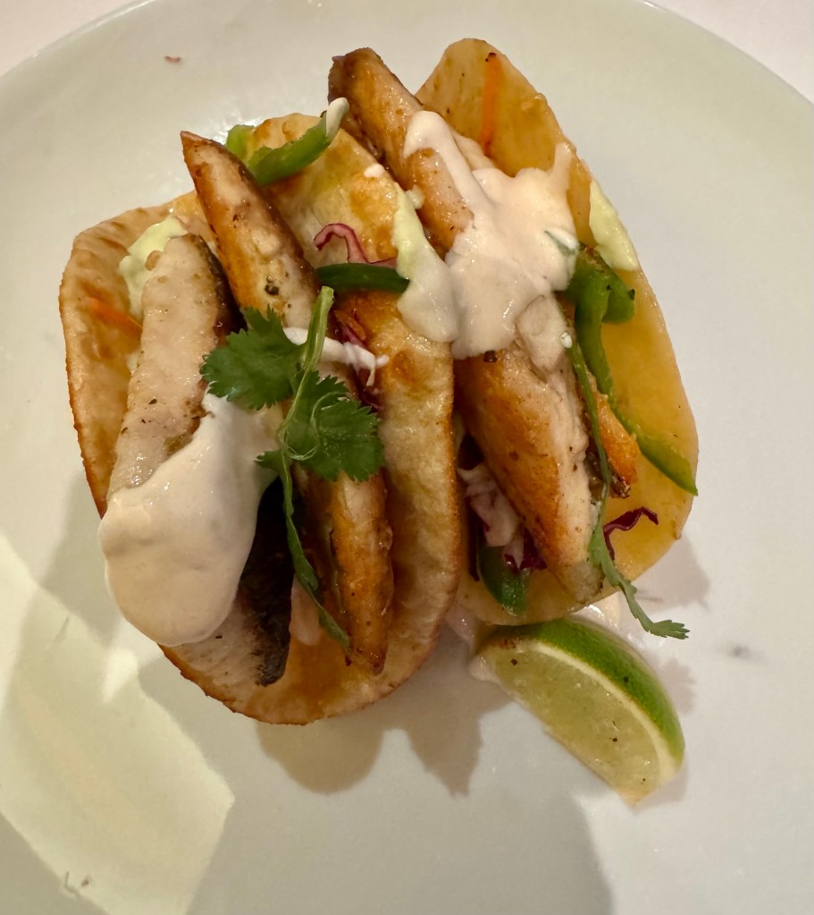 The food was good too! They had this beef tataki for an appetizer that was really tasty and I coupled that with a Caesar salad and sea bass fish tacos and topped it all off with a yummy turtle pie. Good stuff!
