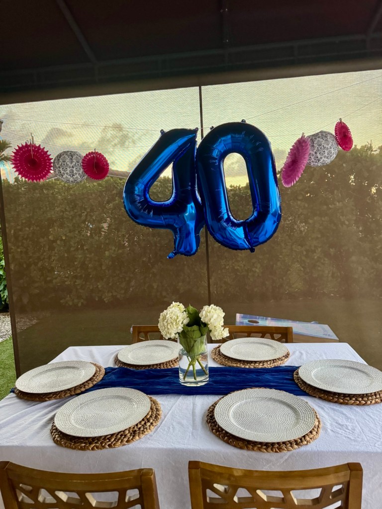 We had the party at one of the twins’ houses and it was decorated so festive. I included lots of pics! It was such a beautiful night I could have hung out by their pool the whole time!