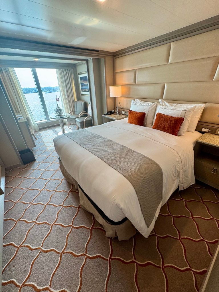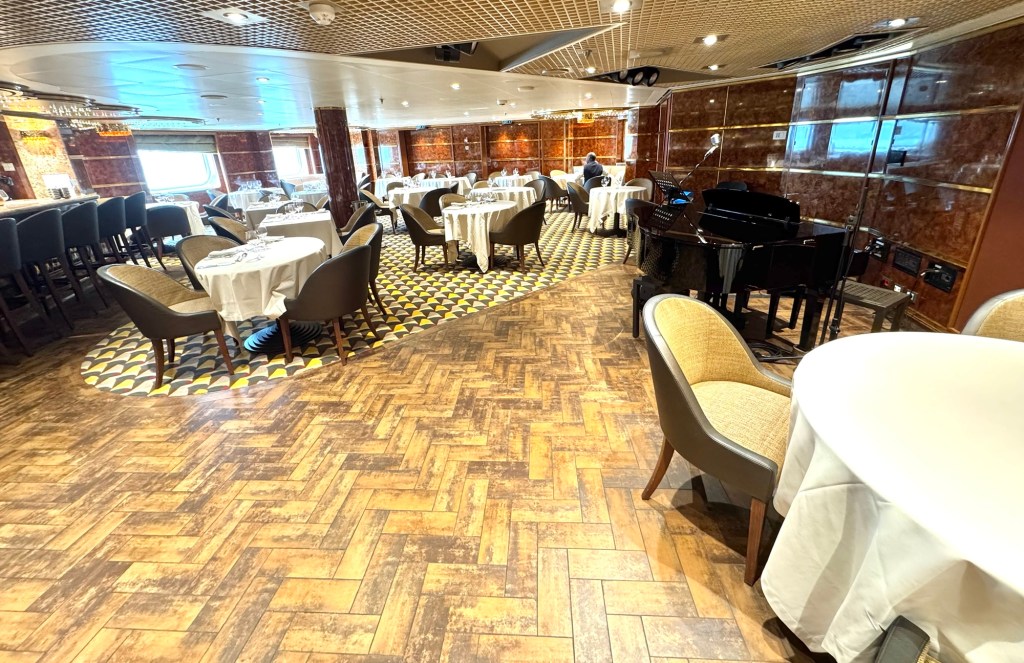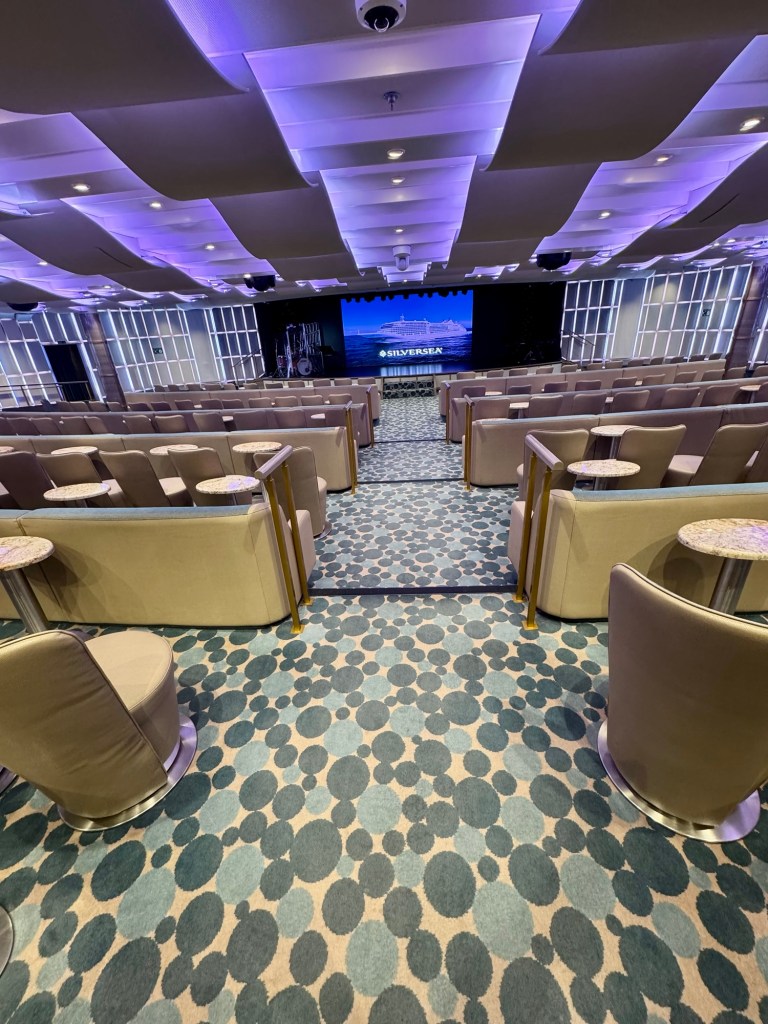Hi Folks! We got lots of well needed sleep last night. We grabbed an Uber from the hotel at 11:45 to take the 5 minute drive to the port. We boarded the ship in about 5 minutes and were touring the ship by noon. And we saw the head Maitre d’, Dino, and he remembered us from the Silver Ray back in Dec. He also got us into the Jazz Club restaurant tonight for dinner which is really hard to get into and is our favorite place. It pays to know people in high places!