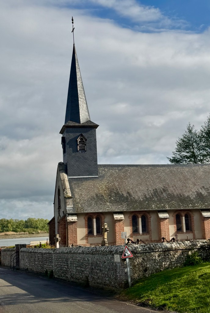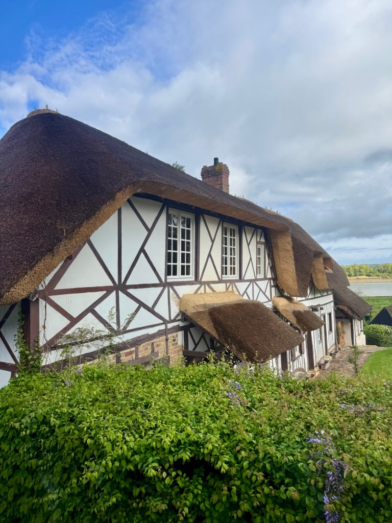 We had a morning 4 hour tour entitled “Scenic Normandy”. We started by driving to Catherine’s Hill to get a nice view over Rouen. We then drove to the Thatched Cottage Trail to reach the banks of the River Seine (the same one that goes all the way to Paris). We saw some quaint villages with lots of thatched roofs (thus the name for the trail!). Kind of reminded me of the Cotswolds in England. We stopped in the little village of Vieux Port and could see that they planted irises on top of the thatched rooftops! Too bad they weren’t in bloom yet.