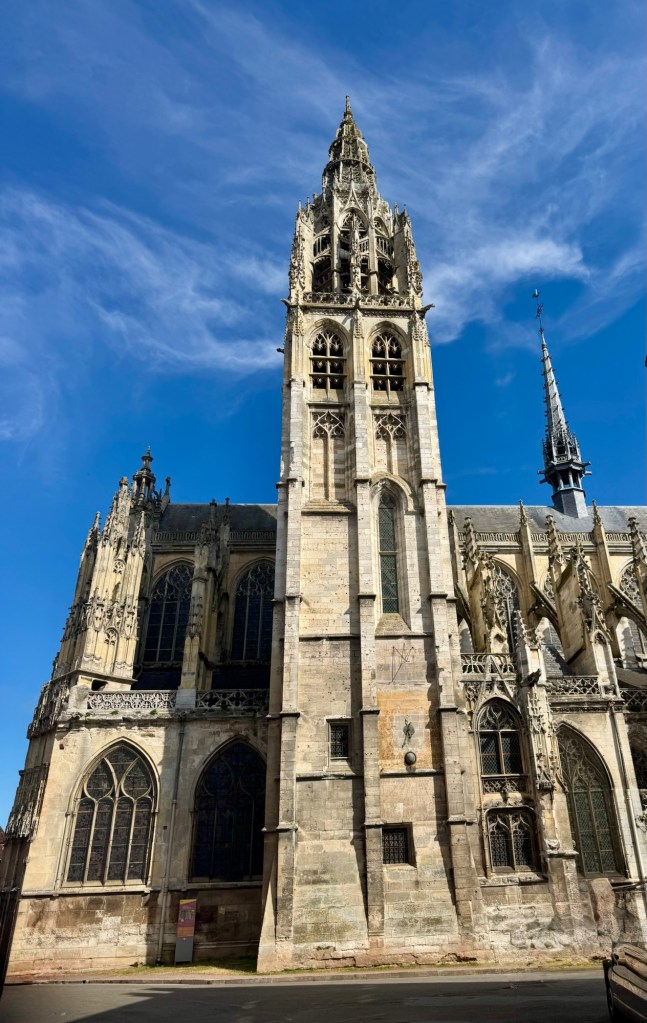 We then traveled thru the evergreen Brotonne Forest and drove across the Brotonne Bridge to the town of Caudebec-en-Caux. It is a charming village with cobbled stoned streets and medieval architecture. There was a 15th century Gothic church that was very pretty. They were having a funeral so we couldn’t go inside but the outside was very majestic. We walked around the town and then drove back to the ship.