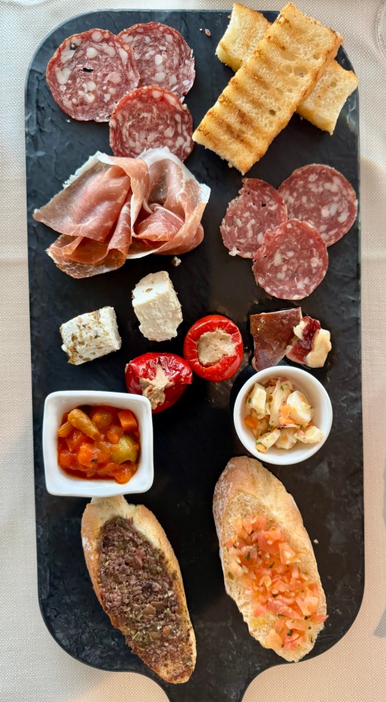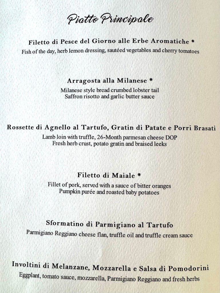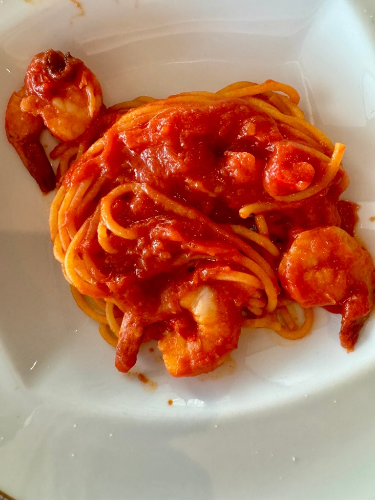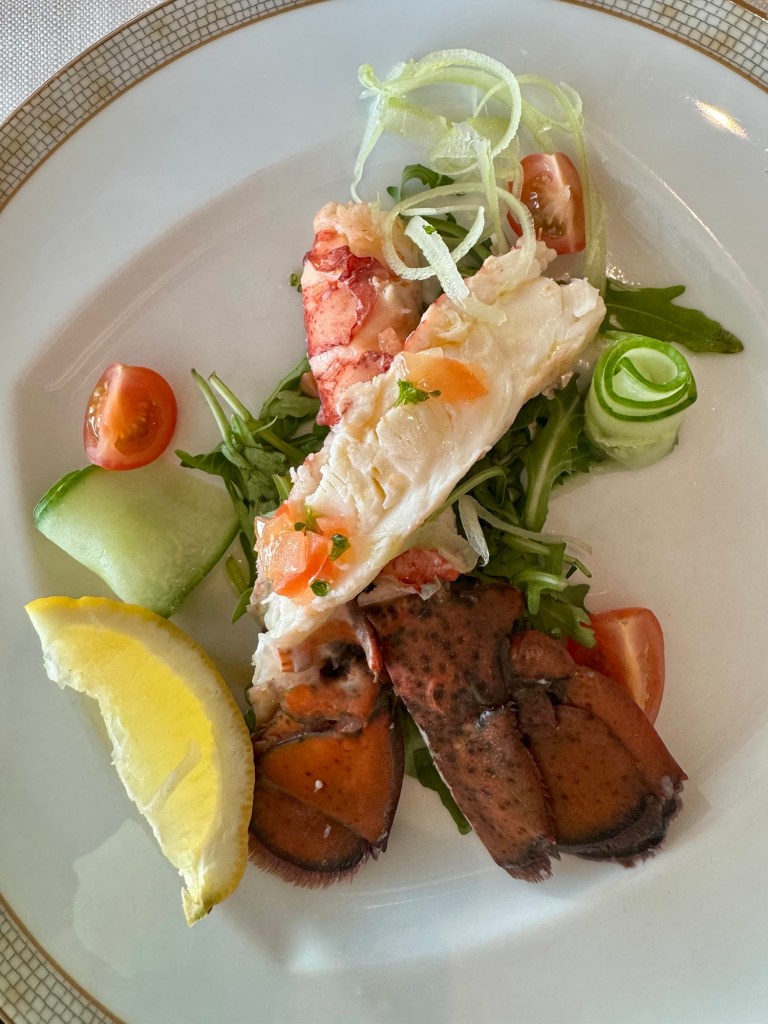 Tonight was Formal night so we got all gussied up and went to the Captain’s gala. We then went to dinner at the Italian specialty restaurant named La Terrazza. I once again had some great seafood! But first they start you off with an amazing charcuterie board. I then started with a lobster appetizer (of course!), the shrimp with pasta, and the Milanese style bread crumbed lobster tail (of course!). I ended with the dark chocolate cake. Everything was top notch! We’ll probably come back again.