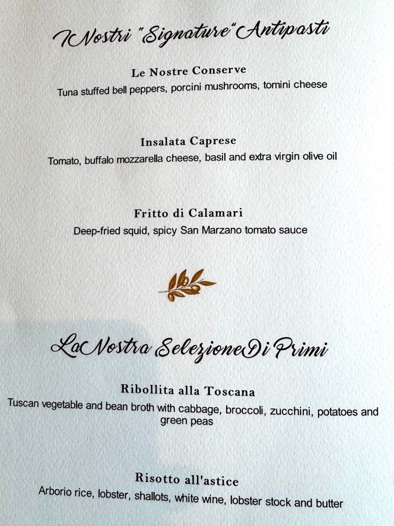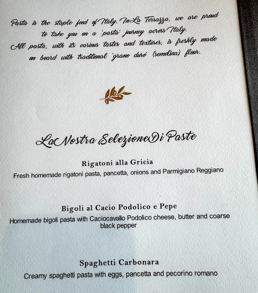 Hi Again All! We once again had a great meal and great entertainment tonight. We had dinner at the Italian specialty restaurant La Terrazza.