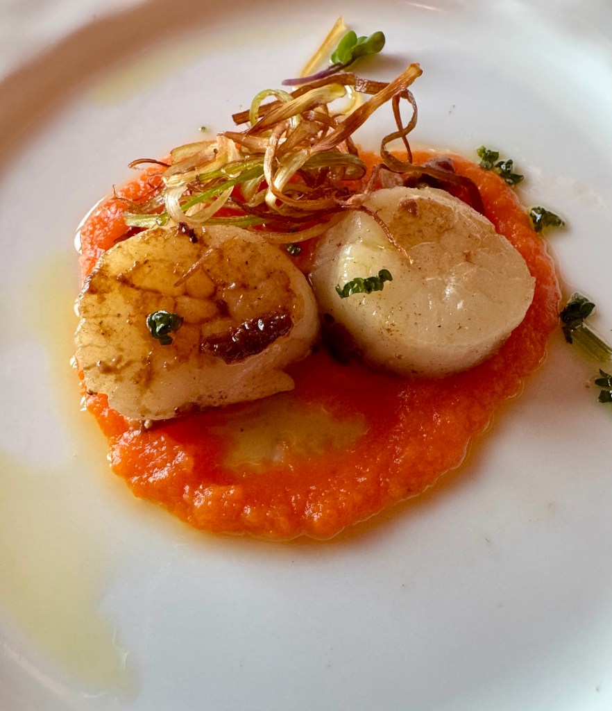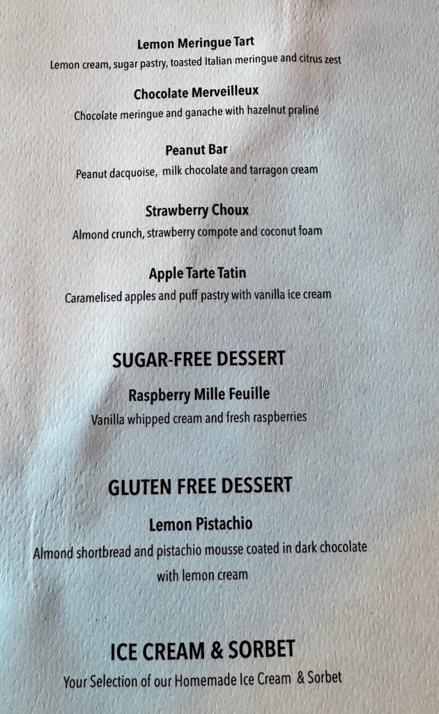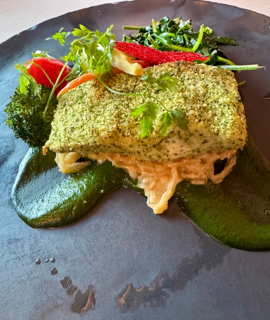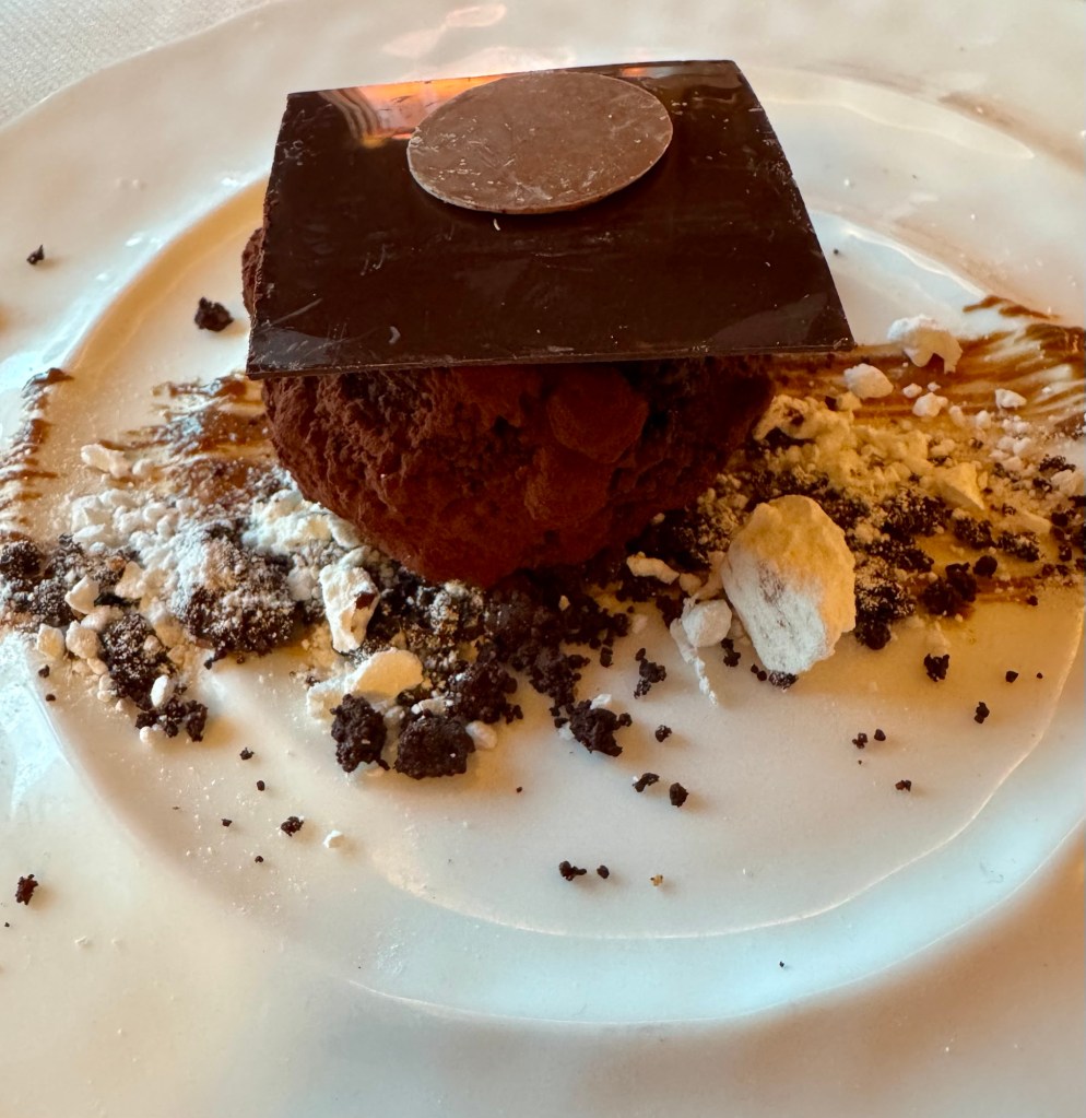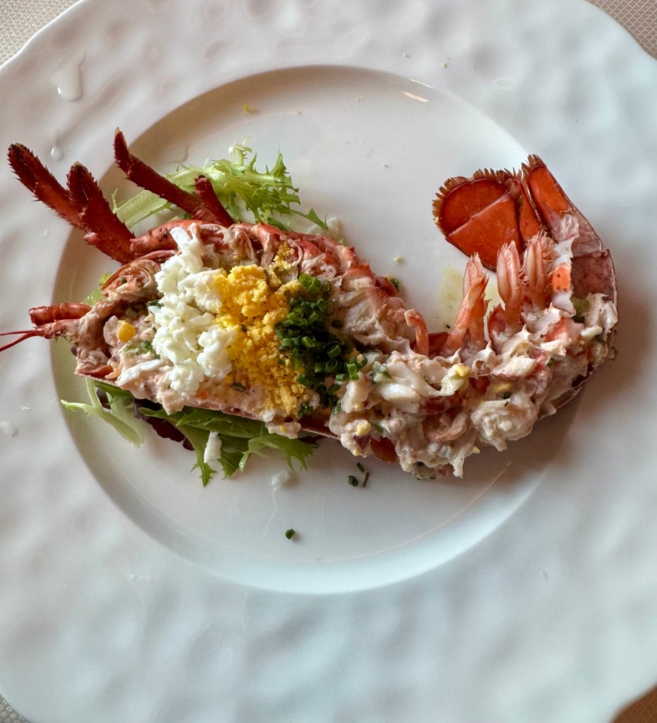 We started with dinner at Atlantide. I did the all seafood meal again. Had the “Dressed Lobster” (of course!) for my first starter and the Seared Scallops for my second. For my main I had the Herb Crusted Halibut. I topped it off with the Chocolate Merveilluex. Wow, what a meal!