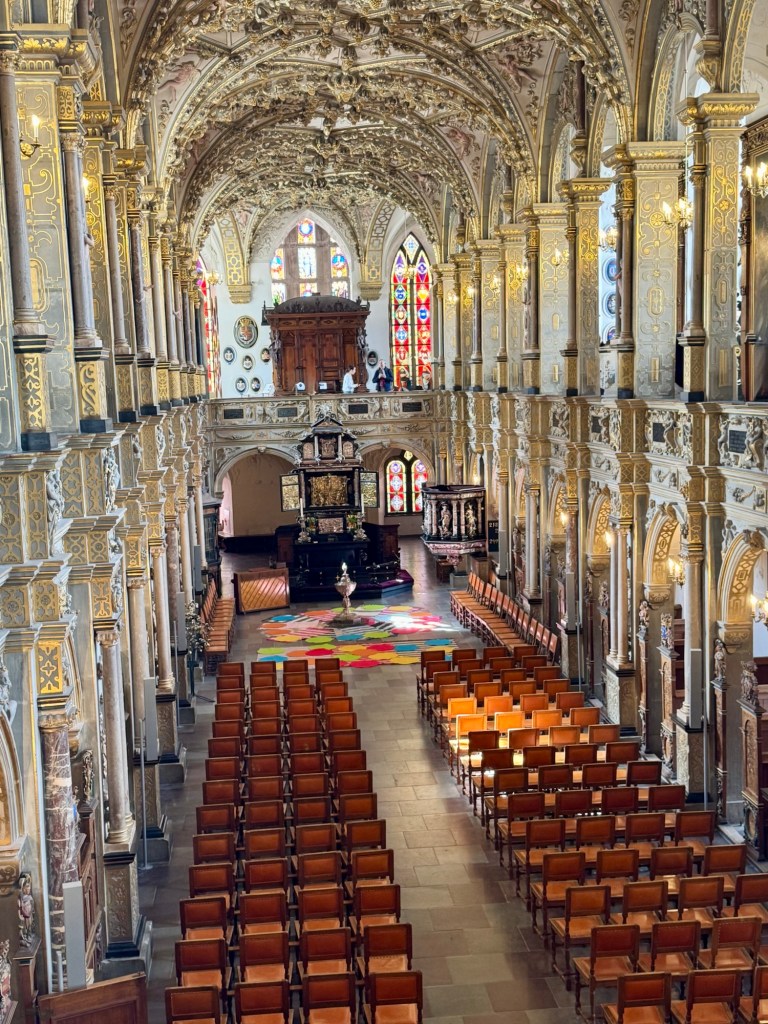 We took a tour thru the castle and saw the chapel where the Danish kings are crowned/anointed as well as the great hall where the King greeted everyone. They had many coats of arms honoring several people and countries and they had one for Eisenhower to thank him and the US for their help during WWII.
