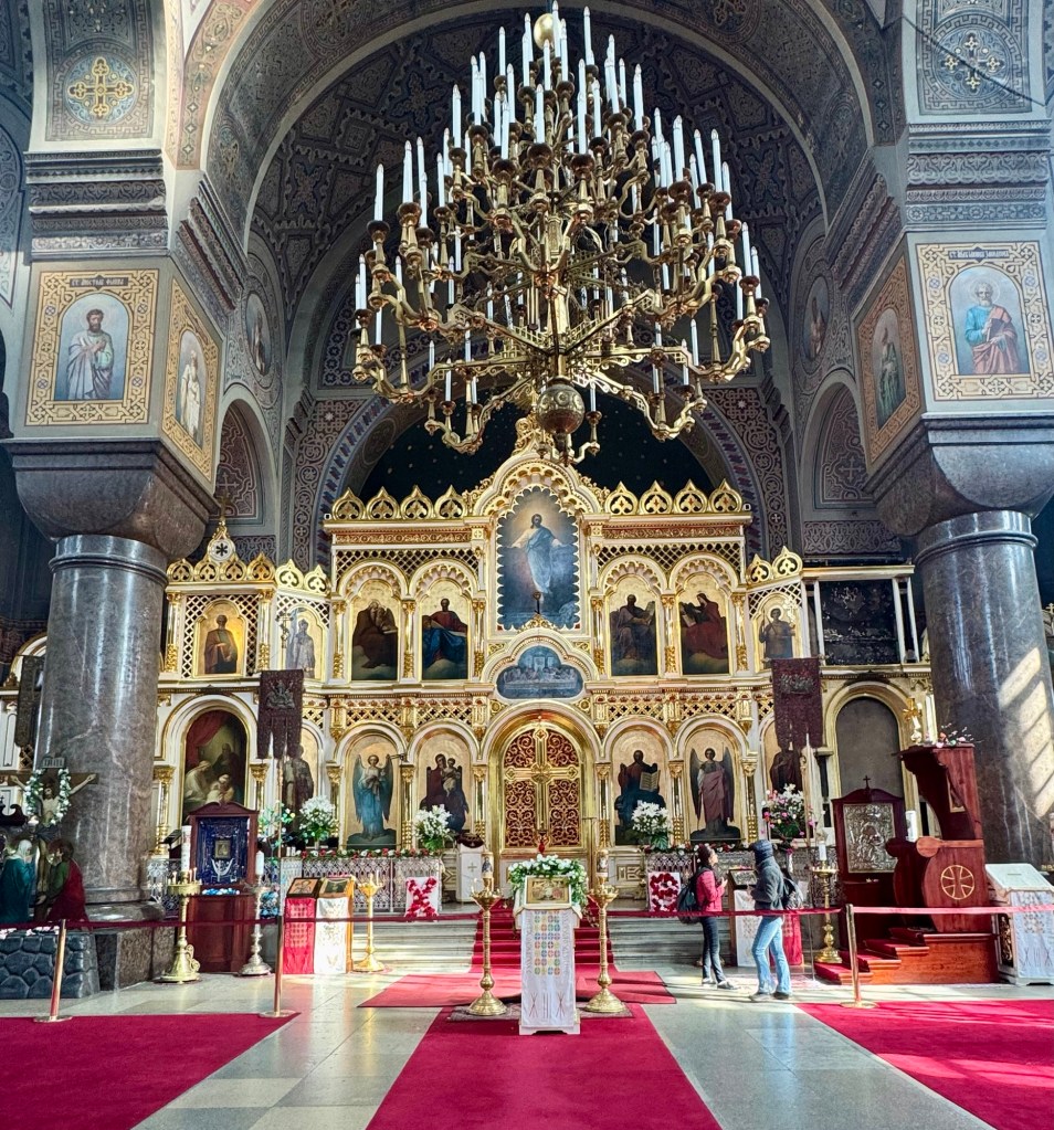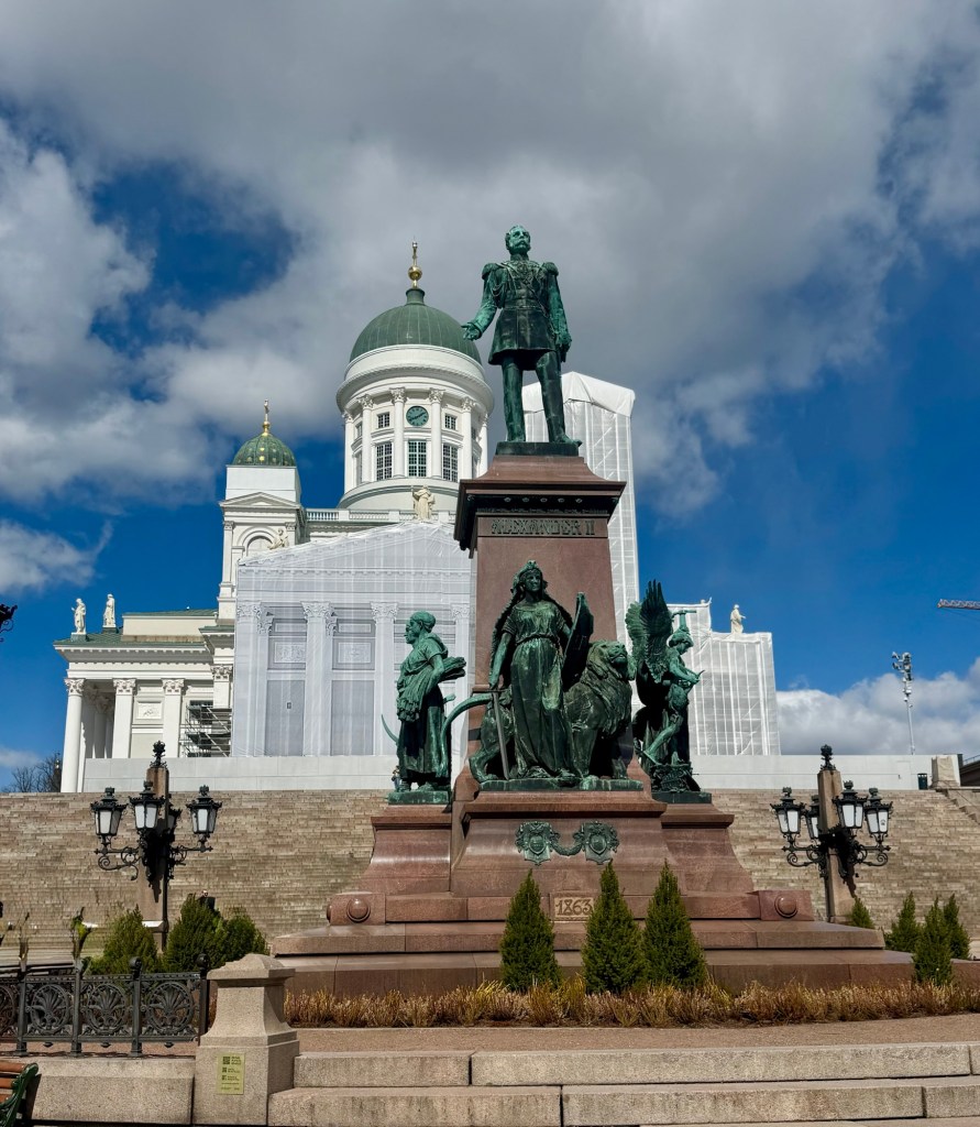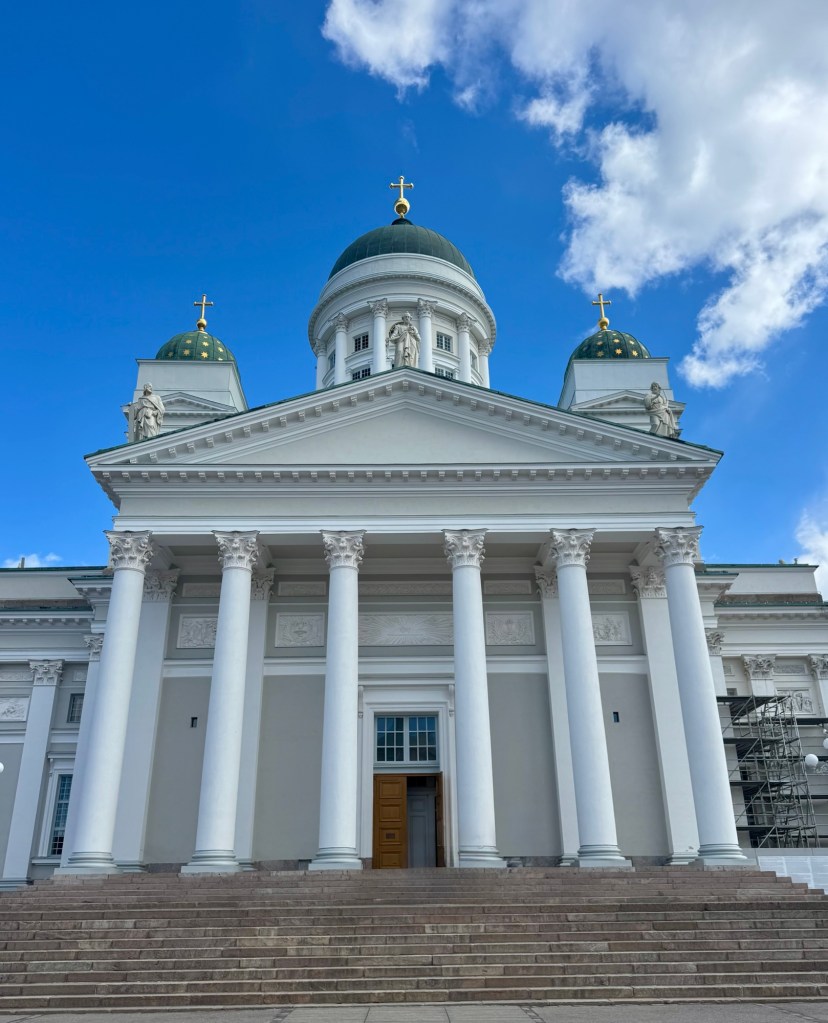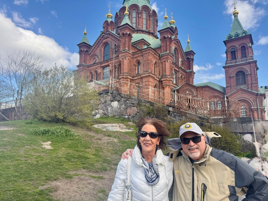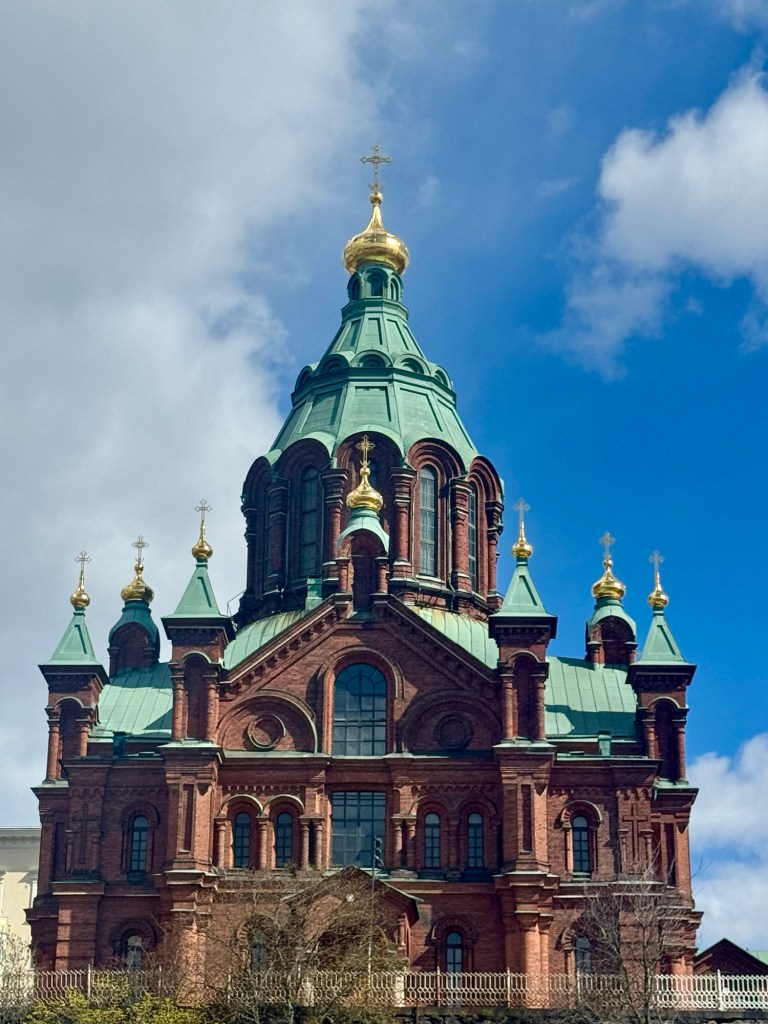 Once back onboard we grabbed a quick lunch then took the shuttle back to town. We walked around town and visited both the Lutheran Cathedral, with the prominent green dome, as well as the Eastern Orthodox Uspenski Cathedral. The Uspenski was built in 1868 for the Russian military when Finland belonged to Russia (Uspenski is Russian for the Assumption of Mary). The rich imagery of the Cathedral’s interior is a stark contrast to the sober Lutheran Cathedral. On the outside, the uppermost onion dome on the Uspenski represents the sacred heart of Jesus, while the 12 smaller domes represents his apostles.