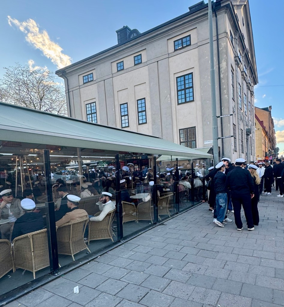Our hotel is on the island of Södermalm which is considered the Bohemian section of town. Yes, we’re hipsters now! We walked to the main square and saw literally hundreds of young kids with white captains hats on. We were told they are all seniors in high school and this was the first day they could wear them. Funny tradition! Also tonight everyone here celebrates the coming of summer on April 30th with bonfires around town. That sounded too crazy and was too late for these old geezers!