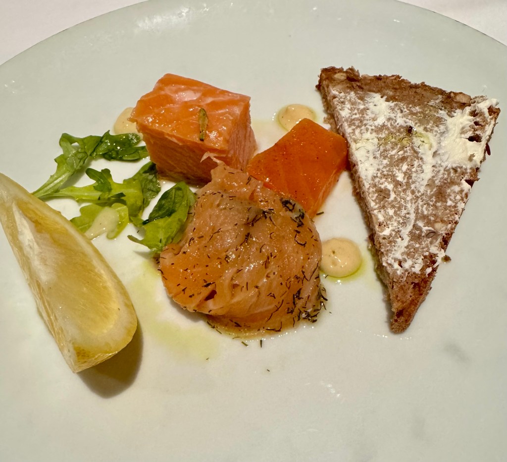 For dinner I went full on salmon! For appetizers I had the Salmon Trio as well as the Crispy Thai Vegetable Spring Roll. For my main I had the Salmon with Herb Mustard Glaze. And for dessert I had the Chocolate Basque Cheesecake. It was all so yummy!