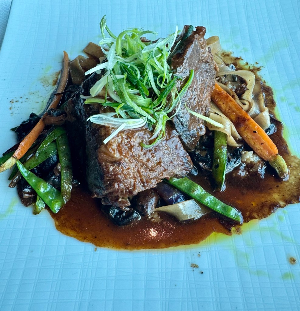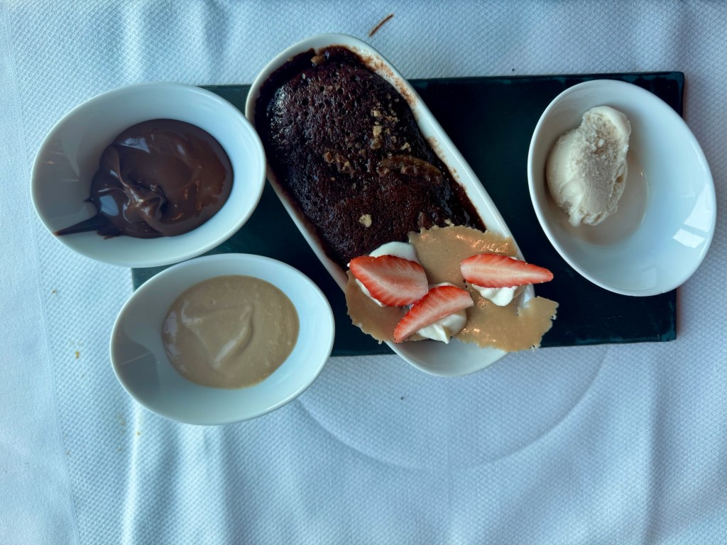 Kathy got the Boneless Ribeye Steak and I got the Beef Short Ribs. We shared the Clothesline Candied Bacon (that sucker is to die for!). I had Crab Cakes and Lobster Bisque for my other starters (had to throw some lobster in!). For dessert we both got the Warm Chocolate Stroopwafel Cobbler. Whoa… that was decadent!
