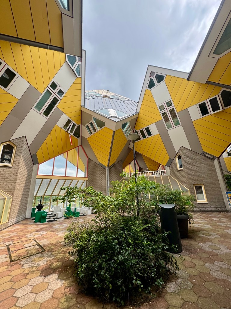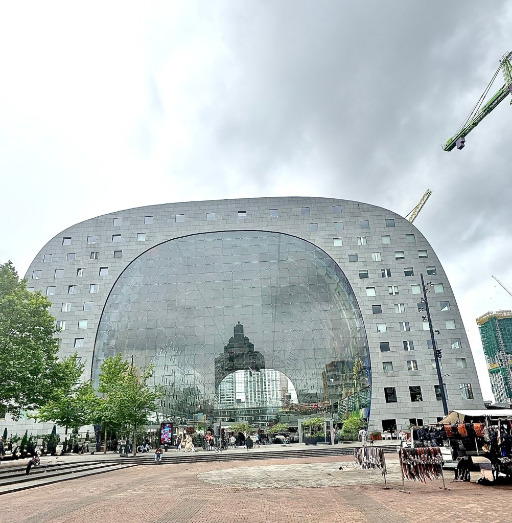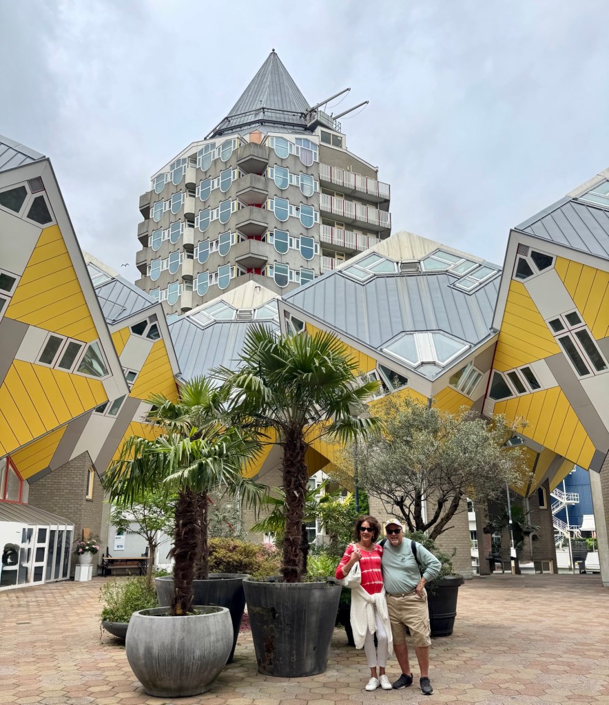 Hi Gang! We’re in Rotterdam in the Netherlands. Rotterdam is the second largest city in the Netherlands after the capital of Amsterdam. Its history goes back to 1270 when it was named for the dam on the River Rotte. It has a population of over 650,00 people and is Europe’s largest seaport. The city was almost completely destroyed during World War II by German bombers but has been completely rebuilt with varied architecture including several skyscrapers and some interesting cube houses.