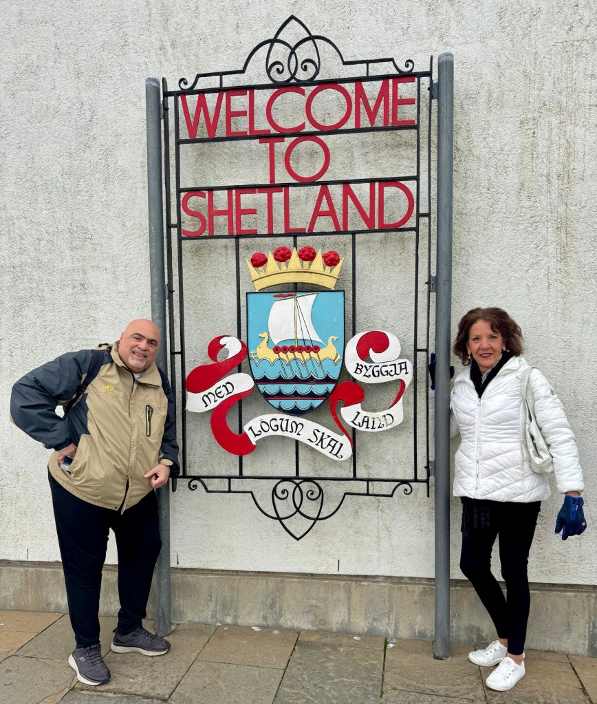 Hi Folks! We made it to the Shetland Islands! Lerwick, in the Shetland Islands, is the northernmost settlement in the United Kingdom. It has a population of about 7,000 (not counting all the sheep!) and lies about 123 miles north of mainland Scotland and 222 miles west of Bergen, Norway. It’s located further north than St Petersburg, Russia and on the same latitude as Anchorage, Alaska so it’s up there! And it has those cute Shetland ponies!