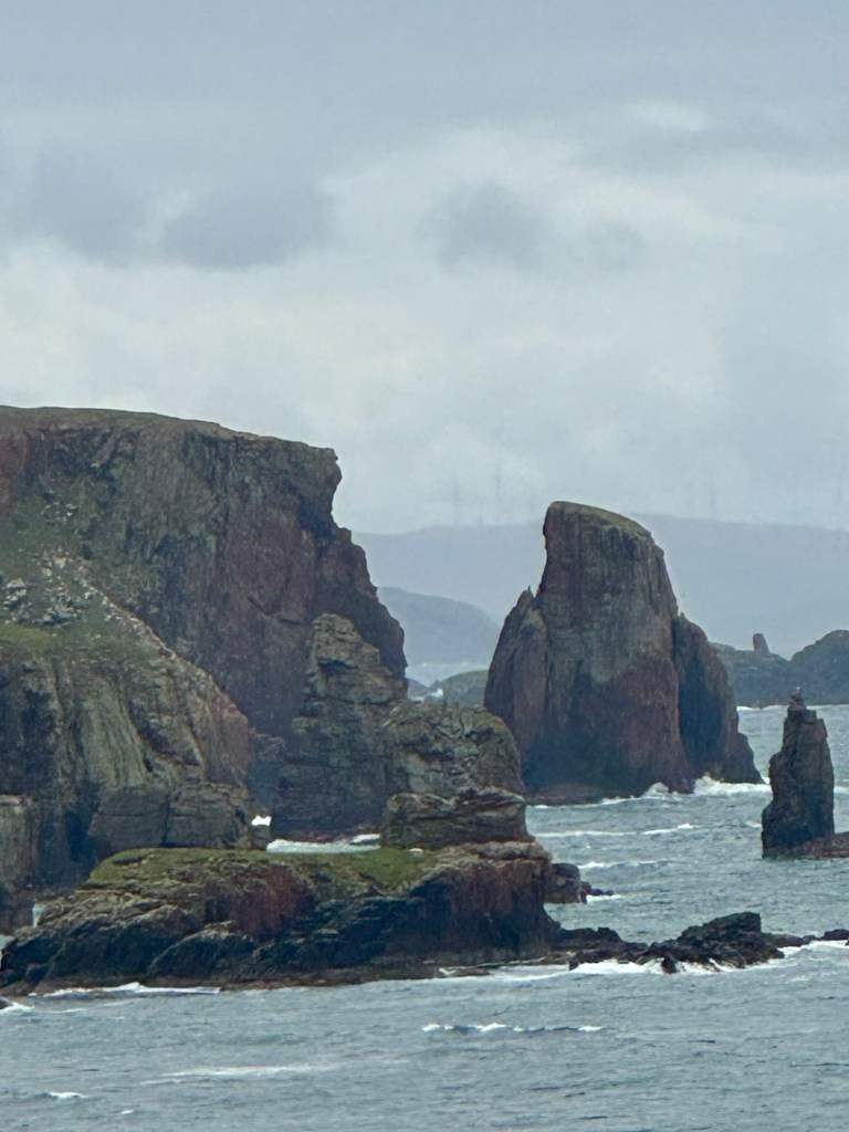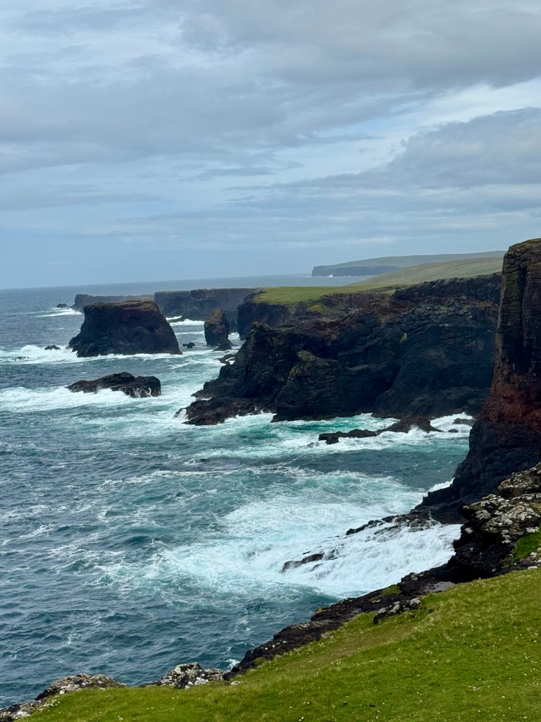 We stopped for refreshments at the Braewick Cafe. The views of the famous Drongs sea stacks were amazing! We then went to the Eshaness Lighthouse, designed in 1929 by David and Charles Stevenson, uncles of author Robert Louis Stevenson.